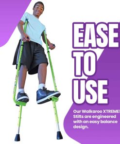 1. EASE OF USE Walkaroo XTREME! Green Stilts are designed for easy balance with an ergonomic S� bend. Perfect Stilts for adults and Stilts for kids, these stilts feature padded underarm foam and adjustable handles for comfort and safety. Ideal for costume stilts, and active enjoyment and fun.