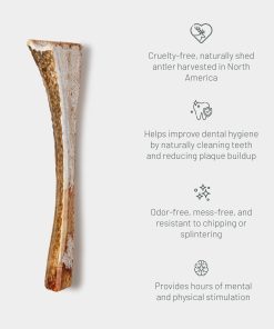 En Get Joy, elaboramos buena comida para perros con ingredientes en los que no tienes que preocuparte, y nuestras mordeduras no son una excepción. Nuestras divisiones de asta de ciervo Elk, provenientes de astas norteamericanas que se desprenden de forma natural o se recolectan en Estados Unidos, son la mordedura natural perfecta para perros, incluso para esos masticadores agresivos. Estas mordeduras están llenas de calcio y minerales y promueven la higiene dental de tu cachorro, manteniendo sus dientes limpios y saludables.