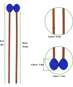Expertamente elaborados, los mazos de marimba azules son ideales para músicos de todos los niveles. Su diseño cuidadoso y calidad superior los convierten en la elección perfecta para artistas que buscan un rendimiento de alto nivel. Los mazos de hilo azul y mango de abedul ofrecen durabilidad y comodidad, permitiéndote disfrutar de largas sesiones de práctica sin fatiga. Su peso adecuado y longitud óptima garantizan una ejecución precisa y profesional en una variedad de percusiones, incluyendo marimba, xilófono, vibráfono, entre otros. Hazte con tu par de Mazos de Marimba Azules y lleva tu interpretación musical al siguiente nivel.