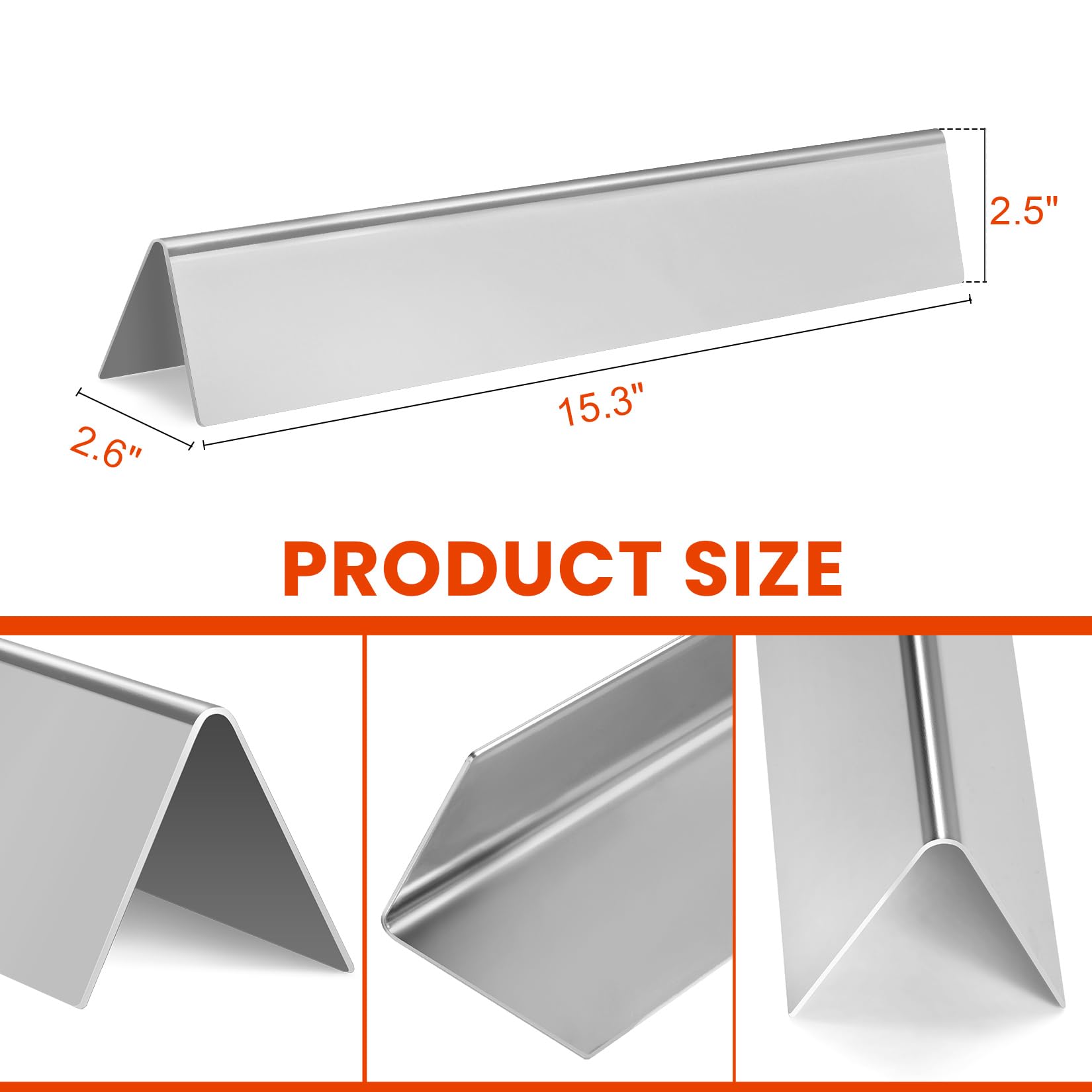 3. Dimensiones y dimensiones del paquete: 15.3″ L x 2.6″ W x 2.5″ H cada una; Paquete: 5 barras de saborizador de acero inoxidable 304 7636. Nota: por favor, mide dos veces el tamaño y la forma de tus piezas originales y compara con las nuestras antes de ordenar.