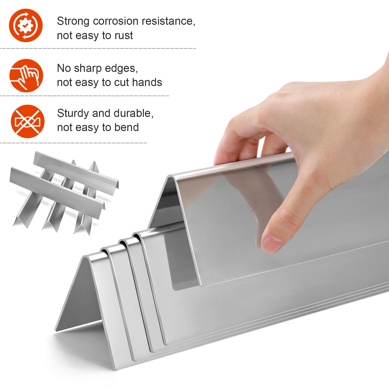 4. Calidad superior – Acero inoxidable 304. Las barras de saborizador están hechas de acero inoxidable 304, no magnético, duradero y robusto, duradero, mejor flexibilidad y mejor resistencia al calor. Fácil instalación en tu parrilla y fácil de limpiar. Barra de sabor de alta calidad, para proteger mejor tus quemadores y prolongar la vida útil de la parrilla. Disfruta de una buena barbacoa, ahorra dinero y esfuerzos.
