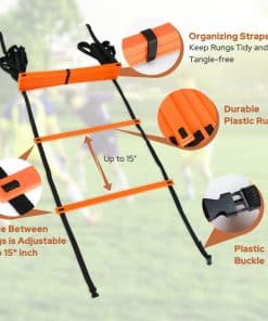 Ideal para deportes al aire libre, la escalera de agilidad es muy útil para fútbol, fútbol, baloncesto, hockey, tenis, etc., ya que puede aumentar tu velocidad, fuerza en las piernas y mejorar tu capacidad de equilibrio. Mejora tus habilidades de rendimiento con esta escalera de entrenamiento de velocidad. Es una gran herramienta para mejorar la rapidez a través de la frecuencia acelerada de la pisada del pie y el levantamiento. También puede ayudar a perder peso, ya que puede quemar calorías de manera efectiva.