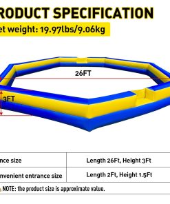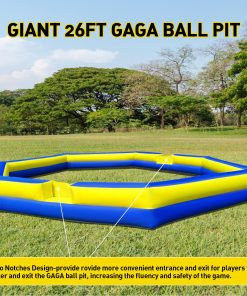Este gigante Gaga Ball Pit de 26 pies es perfecto para familias, escuelas y actividades recreativas en interiores y exteriores. Está hecho de material de alta resistencia Oxford 210D con un fondo de Oxford engrosado para mayor durabilidad y vida útil prolongada. Su innovadora estructura heptagonal estable lo hace conveniente y fácil de configurar con el ventilador incorporado. Diseñado para ser seguro, el gaga ball pit inflable tiene un diseño cuidadoso sin bordes duros para reducir el riesgo de lesiones. Los detalles humanizados, como los anillos en forma de D en la parte inferior y la entrada con muescas, hacen que sea fácil de sujetar y de acceder. Con una amplia variedad de usos, incluidos campamentos, actividades escolares y fiestas, este juego activo promueve el trabajo en equipo y la diversión para amigos y familias. No olvides mantener el soplador en funcionamiento durante el uso para mantenerlo inflado.