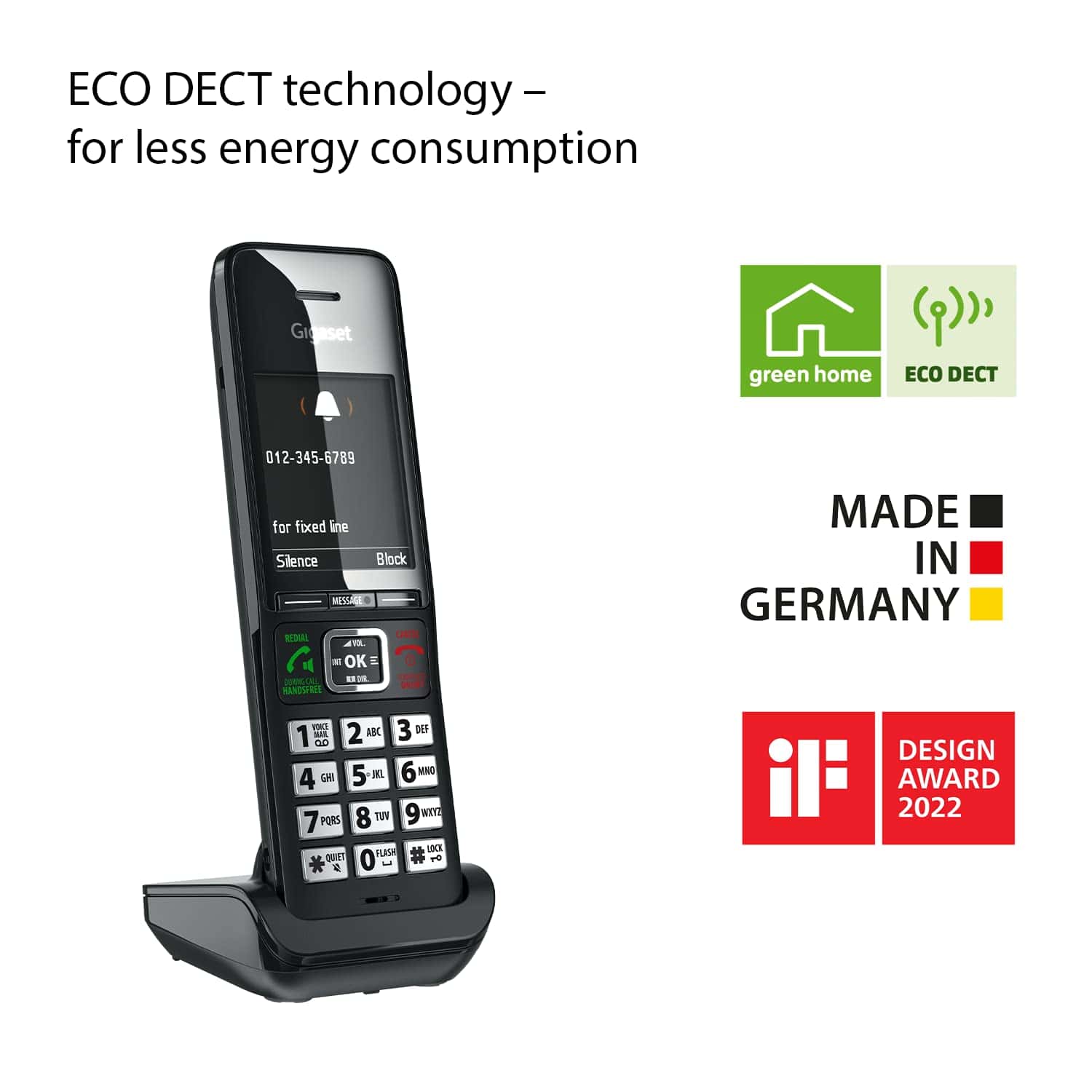 4. CALIDAD HECHA EN ALEMANIA – Diseñado y fabricado en Alemania – la tecnología ECO DECT respetuosa con el medio ambiente garantiza un menor consumo de energía.
