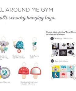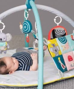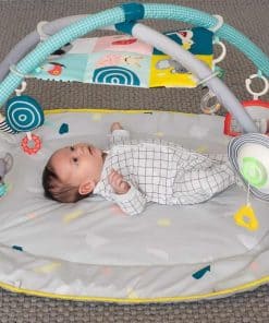 Gimnasio para bebés recién nacidos con 6 actividades juguetonas que incluyen un «Sensi-Center» arrugado único para animar al bebé a practicar una variedad de posiciones corporales y obtener beneficios de desarrollo de cada posición. En Taf Toys entendemos que elegir el juguete de desarrollo adecuado para su hijo es una decisión importante. La amplia gama de productos de Taf Toys le proporciona juguetes de desarrollo que corresponden a la edad de su bebé y que son desafiantes, divertidos e inspiran la imaginación. Todos nuestros juguetes son creados con la intención de promover el desarrollo emocional, cognitivo y físico de su bebé durante sus primeros dos años de crecimiento. Nuestro objetivo es ayudar a su bebé a establecer una base para un camino de desarrollo saludable y feliz y brindarle una experiencia de crianza más fácil.