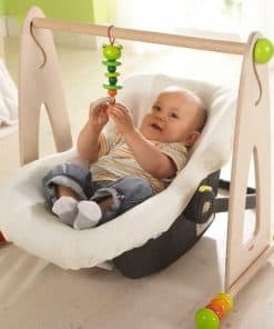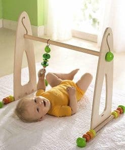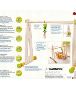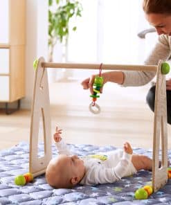 Gimnasio de Juego Color Fun de HABA – Centro de Actividades de Madera con Altura Ajustable, Discos Deslizantes y Rana Colgante. ¡Click-clack! Los pequeños exploradores disfrutan escuchando con deleite cuando los coloridos discos de madera en los lados golpean alegremente juntos al empujarlos de un lado a otro. Arriba, la encantadora ranita cuelga en la barra de descubrimiento y adora ser mirada con curiosidad. Y cuando los pequeños no están acostados en su mantita de juegos favorita, sino sentados en su asiento de bebé, la diversión del descubrimiento todavía continúa. Un simple mecanismo de tornillo permite a los adultos ajustar la altura de la barra en cuestión de segundos. Los bebés son animados a rodar a su lado para jugar con los discos de madera deslizantes a lo largo de la base del gimnasio de juegos. Serán recompensados con fantásticos efectos acústicos. Incluye una rana sonajera de madera de haya que cuelga para que el bebé la alcance. Abundante espacio para añadir aún más elementos colgantes. Hecho de madera de haya y contrachapado de abedul. Medidas aproximadas 23.6″L x 17.7″ W x 21.6″ H. Diseñado en Alemania y fabricado con cuidado en Bulgaria.