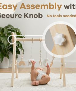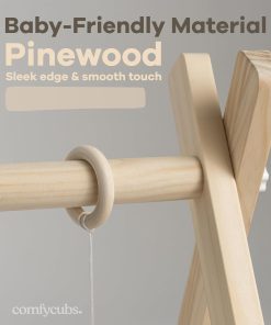 4. Diseño estético para cualquier habitación: El gimnasio de madera para bebés de Comfy Cubs viene en un acabado de madera natural y un diseño minimalista que realzará cualquier guardería o área de estar. Nuestro gimnasio de juegos en interiores se integra perfectamente con la decoración del hogar moderna, rústica o clásica, al tiempo que ofrece un espacio de juego funcional.