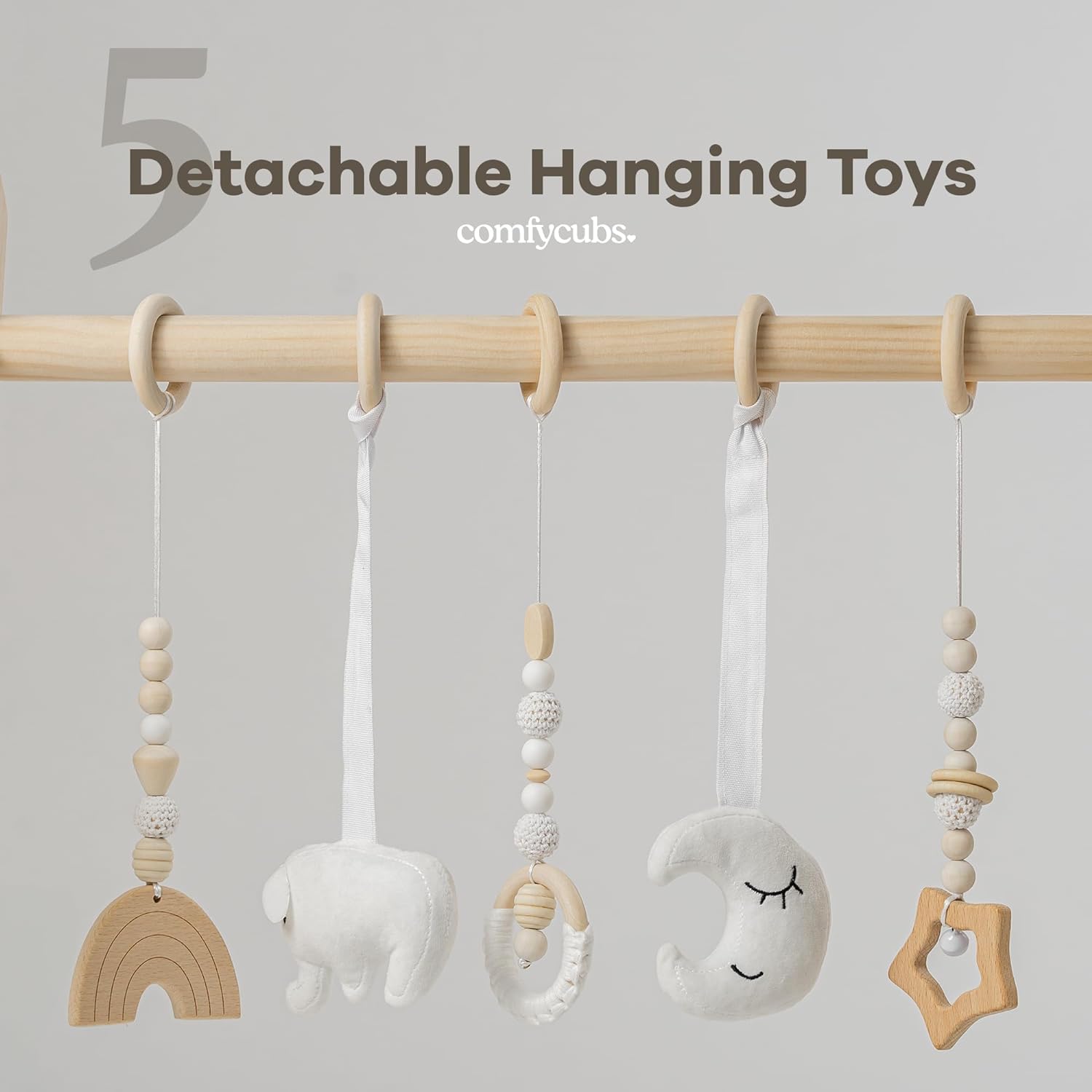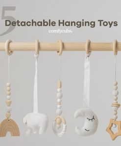 2. Gimnasio de juegos Montessori para bebés: El gimnasio de madera para bebés de Comfy Cubs incluye 5 adorables juguetes colgantes en tonos blancos y de madera, diseñados para estimular los sentidos visuales y táctiles de su bebé. Ayuda a desarrollar la coordinación mano-ojo y fortalece las habilidades motoras finas desde una edad temprana.