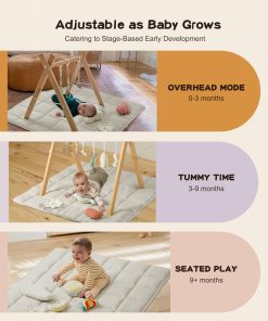 Con un estilo versátil y elegante, nuestro gimnasio de juegos de madera se adapta a cualquier decoración de hogar, desde la habitación del bebé hasta la sala de estar. Su diseño neutro y contemporáneo lo convierte en un regalo perfecto para baby showers, fiestas de recién nacidos y cumpleaños.