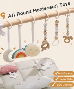 Además de la comodidad y la seguridad, nuestro gimnasio de juegos de madera para bebés está diseñado para fomentar el desarrollo integral de su pequeño. Con 6 juguetes colgantes, cada uno diseñado para promover el descubrimiento sensorial y las habilidades motoras, su bebé disfrutará de una estimulante experiencia de juego. La almohada en forma de nube brinda comodidad adicional durante el tiempo de barriga y el tapete suave y acolchado garantiza la seguridad y la diversión durante cada sesión de juego.