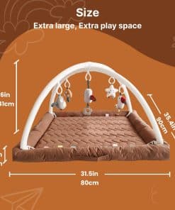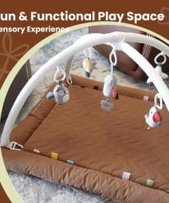 Gimnasio para Bebés CoocooBaby con 5 Juguetes Sensoriales, Tapete Grueso y Esponjoso para el Suelo, Tapete de Tiempo Boca Abajo, Desarrollo Convertible por Etapas de Bebé a Niño Pequeño (GoldenBrown). Descubre el mejor tapete de juegos para bebés diseñado para ser su primer parque de juegos. Este versátil tapete ofrece un espacio dedicado para el tiempo boca abajo, alcanzar y rodar, mientras que el Arco de Juguetes desmontable proporciona un compromiso sensorial interminable. Priorizando la seguridad de tu bebé, este tapete de juegos está hecho de algodón de alta calidad, ultra suave. Con bordes redondeados y una superficie acolchada suave, crea un área cómoda y segura para que tu bebé explore sin preocupaciones. Presenta 5 encantadores juguetes sensoriales desmontables, incluyendo tela crujiente, campanas y sonajeros, este tapete de juegos estimula los sentidos de tu bebé y fomenta la curiosidad durante esas etapas de desarrollo tempranas crucial… (continues)