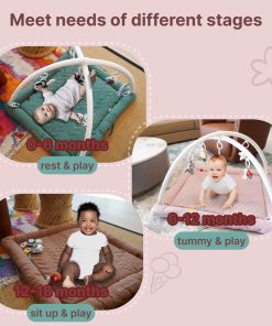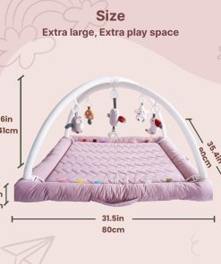 Gimnasio para Bebés CoocooBaby con 5 Juguetes Sensoriales, Tapete Grueso y Esponjoso para el Piso, Tapete de Tiempo Boca Abajo, Desarrollo Convertible de Etapa a Etapa de Bebé a Niño Pequeño (Mistyrose). Descubre el mejor tapete de juegos para bebés diseñado para ser el primer parque de juegos de tu pequeño! Este versátil tapete de juegos ofrece un espacio dedicado para el tiempo boca abajo, el alcance y el rodar, mientras que el Arco de Juguetes desmontable proporciona un compromiso sensorial interminable. Priorizando la seguridad de tu bebé, nuestro tapete de juegos está fabricado con algodón premium ultra suave. Con bordes redondeados y una superficie acolchada suave, crea un área cómoda y segura para que tu bebé explore sin preocupaciones. Con 5 encantadores juguetes sensoriales desmontables, incluyendo telas crujientes, campanas y sonajeros, este tapete de juegos estimula los sentidos de tu bebé y fomenta la curiosidad durante esas crucial primeras etapas de desarrollo. Liviano y compacto, el Tapete de Juegos CoocooBaby está diseñado para la diversión en movimiento! Con un práctico asa de transporte, puedes llevarlo fácilmente a citas de juego, visitas familiares u salidas, asegurando que tu bebé tenga un área de juego acogedora estés donde estés. Diseñado para padres ocupados, este tapete de juegos es lavable a máquina con cubierta desmontable, facilitando la limpieza. Pasa menos tiempo preocupándote por los desorden y más tiempo disfrutando de momentos preciosos con tu pequeño!