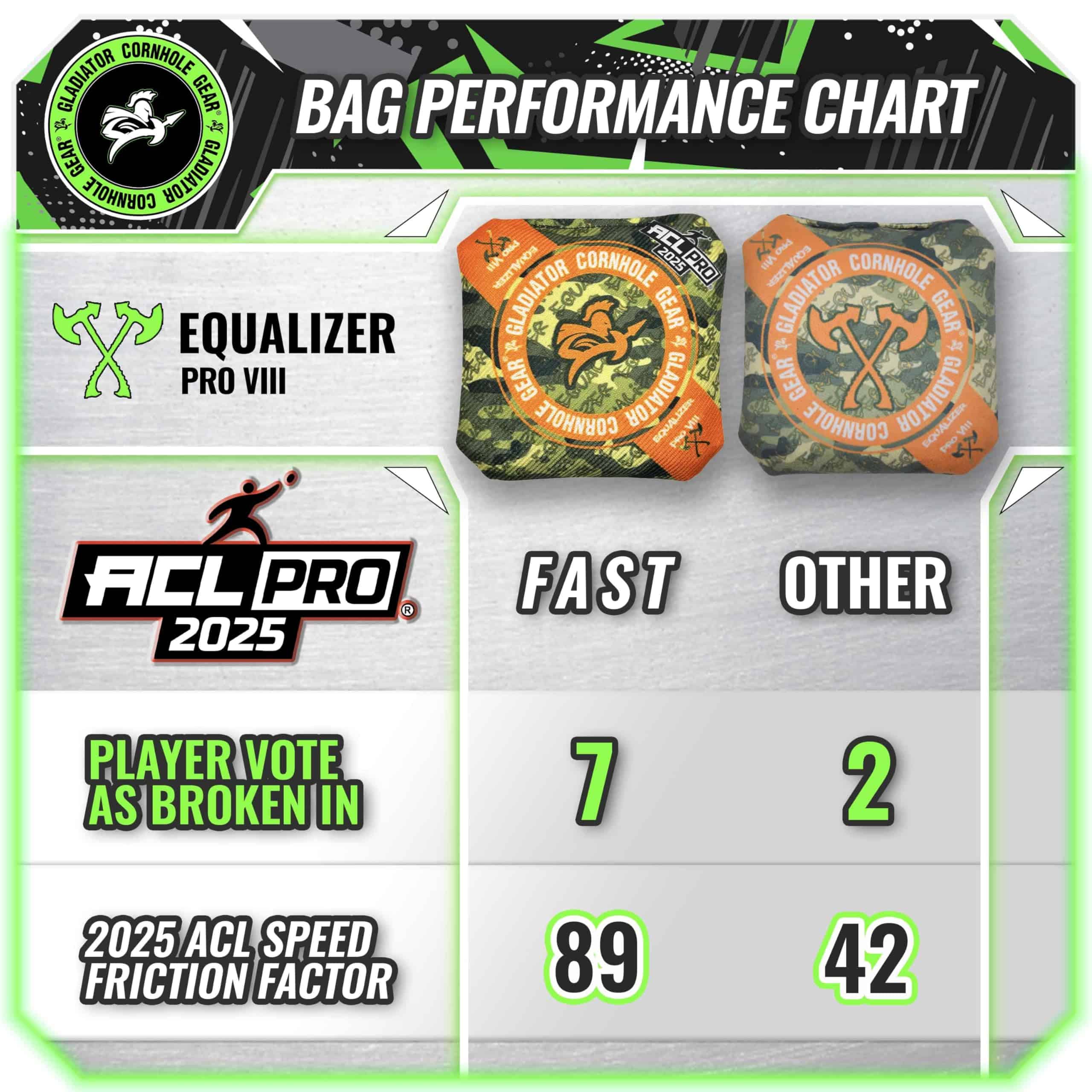 1. SET DE 4 GLADIATOR EQUALIZER PRO: Bolsas ACL-Pro deslizantes y adherentes para Cornhole, nuestro lado deslizante te da la ventaja para empujar y maniobrar alrededor de las bolsas bloqueadoras, mientras que el lado adherente no patina y bloquea incluso en tableros extremadamente resbaladizos.