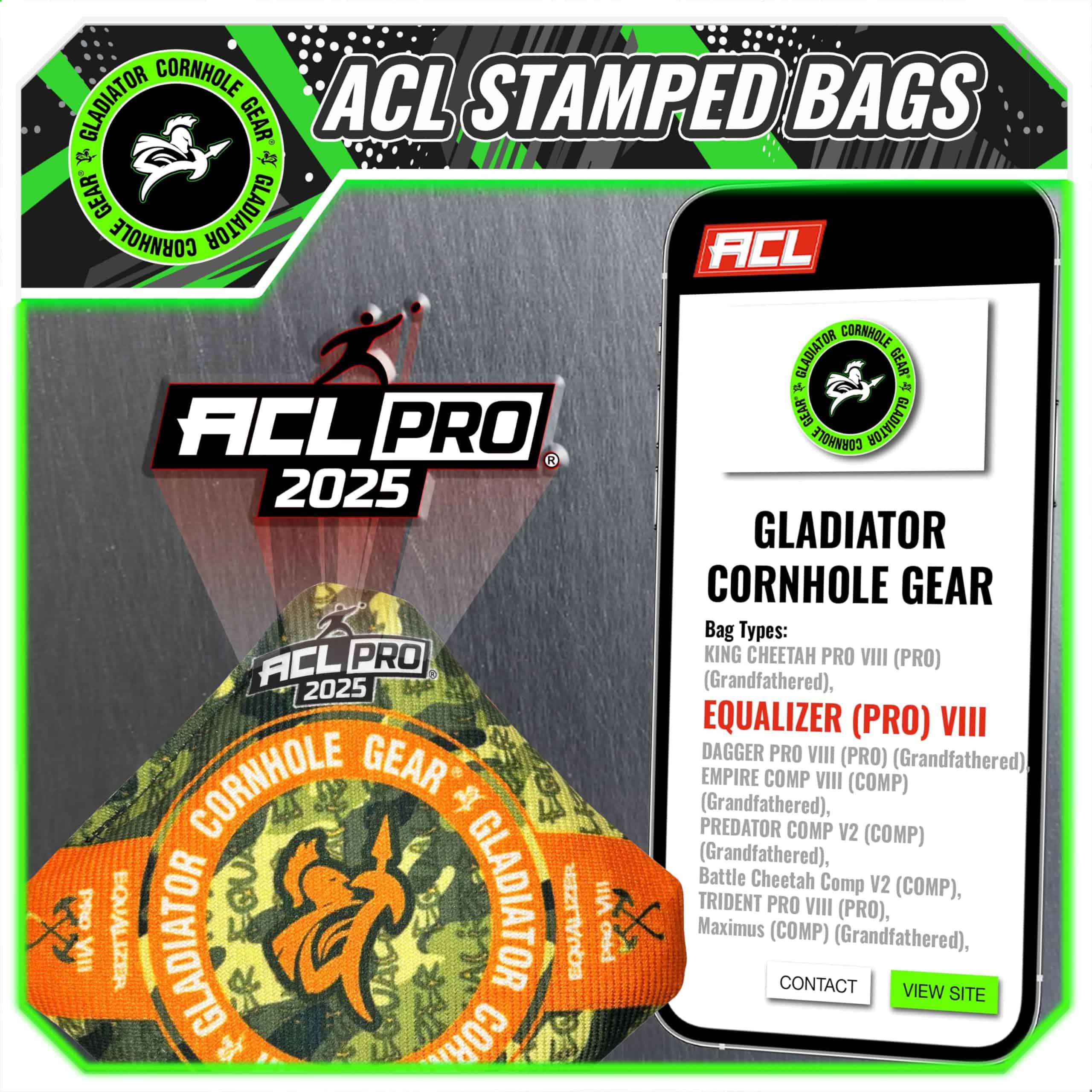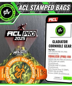 3. APROBADO POR LA LIGA AMERICANA DE CORNHOLE: Todas las series de bolsas Gladiator están oficialmente marcadas y certificadas por la ACL, ya sea como Pro, Comp o Rec. ¡No se deje engañar por otros sitios web que hacen afirmaciones falsas, busque el sello de la ACL!