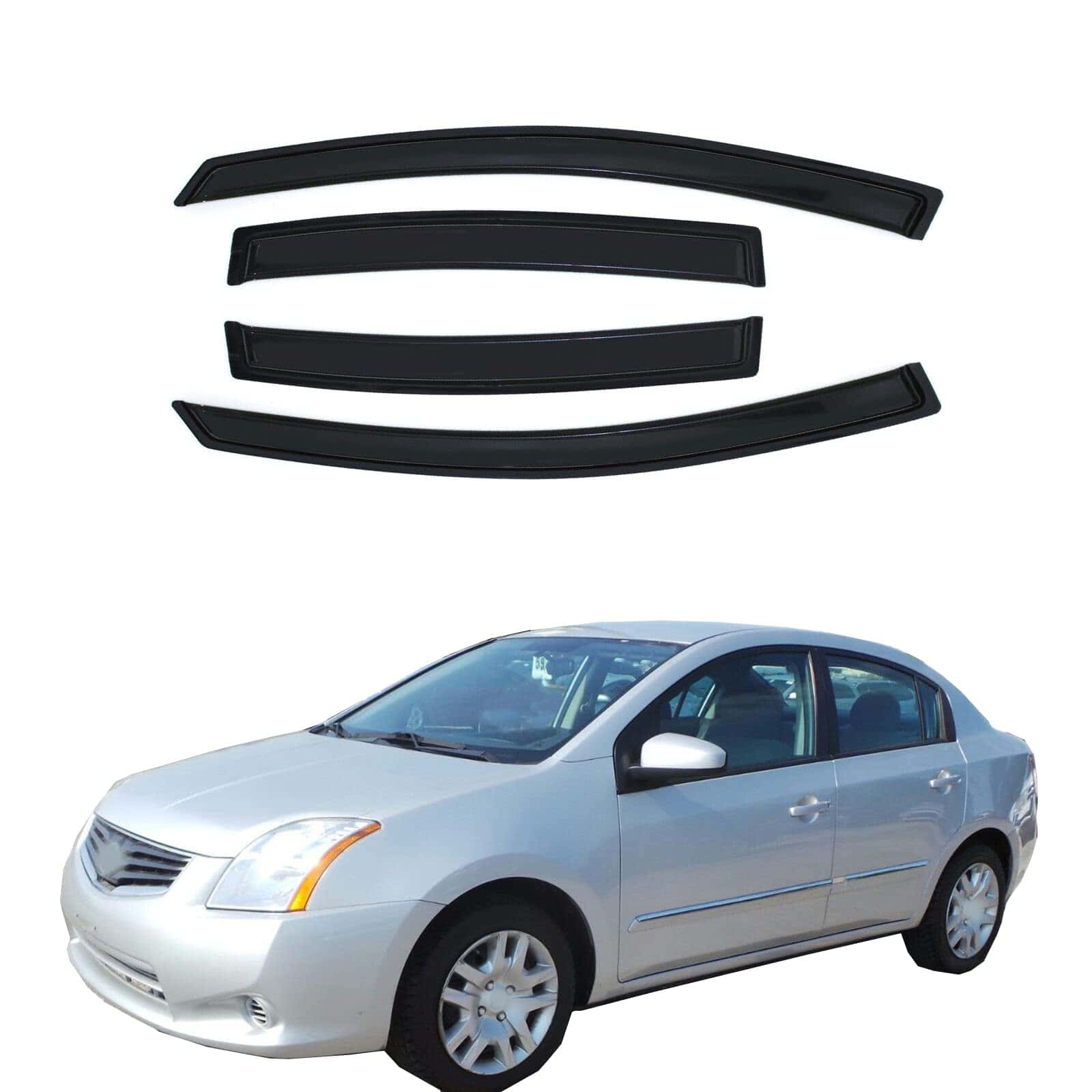 2. Incluido: 4 viseras para ventanas con cintas adhesivas de doble cara (La instrucción de instalación no está incluida, por favor revise la imagen de instalación de muestra para referencia).