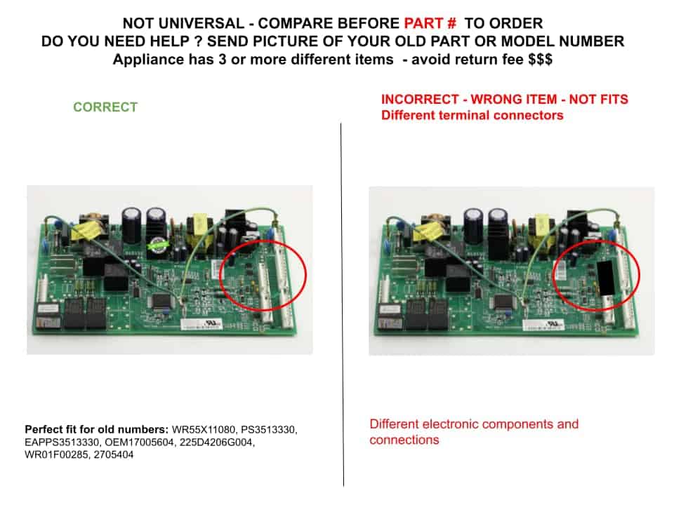 CKDX11080X Nuevo número de parte actualizado su número antiguo ya no está disponible, el nuevo número se ajusta a series antiguas y nuevas. GSPUSA WR55X11080 CKDX11080X compatible con la Placa de Control Principal del Refrigerador GE se adapta al número antiguo WR55X11080. Compatible con varias marcas / NO OEM y se ajusta perfectamente a series antiguas y nuevas DSE26JSEDCSS DSHF6VGBBCBB DSHF6VGBBCWW DSHF6VGBCCBB DSHF6VGBCCWW GSHF6NGBBHBB GSHF6NGBBHWW GSHF6NGBCHBB GSHF6NGBCHWW DSHS6VGBBCSS.