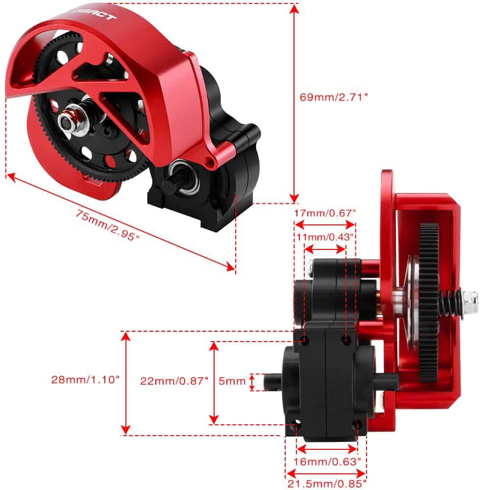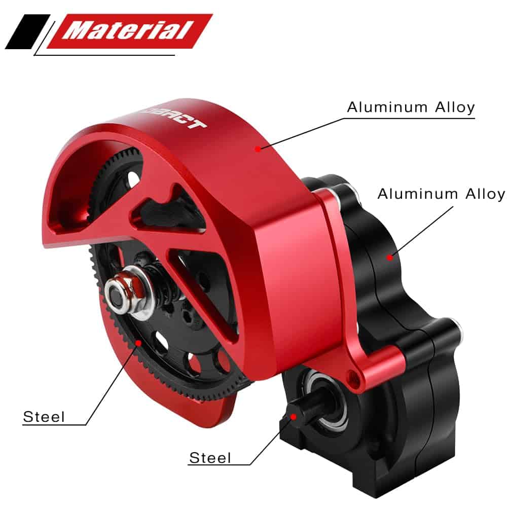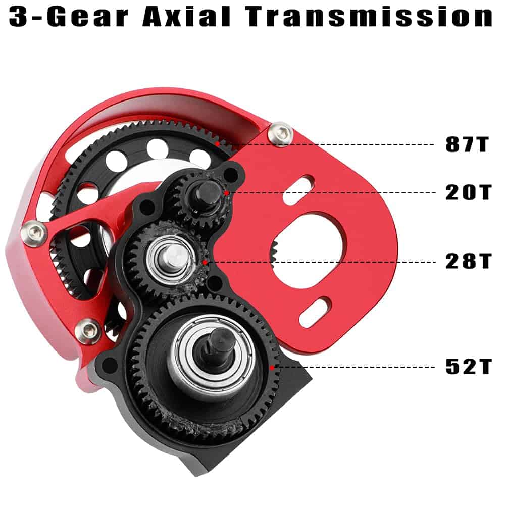 1. Compatibilidad Metal RC gearbox se adapta a la transmisión Axial SCX10, transmisión SCX10 II, transmisión SMT10, transmision AX10, transmisión VS4-10, accesorios de actualización del crawler RC. 2. Engranajes de caja de cambios Hay cuatro engranajes en la caja de cambios, engranajes de acero endurecido mecanizados por incisiones. El engranaje más grande tiene 87T, y los engranajes pequeños son 20T, 28T, 52T. (Transmisión axial de 3 engranajes).