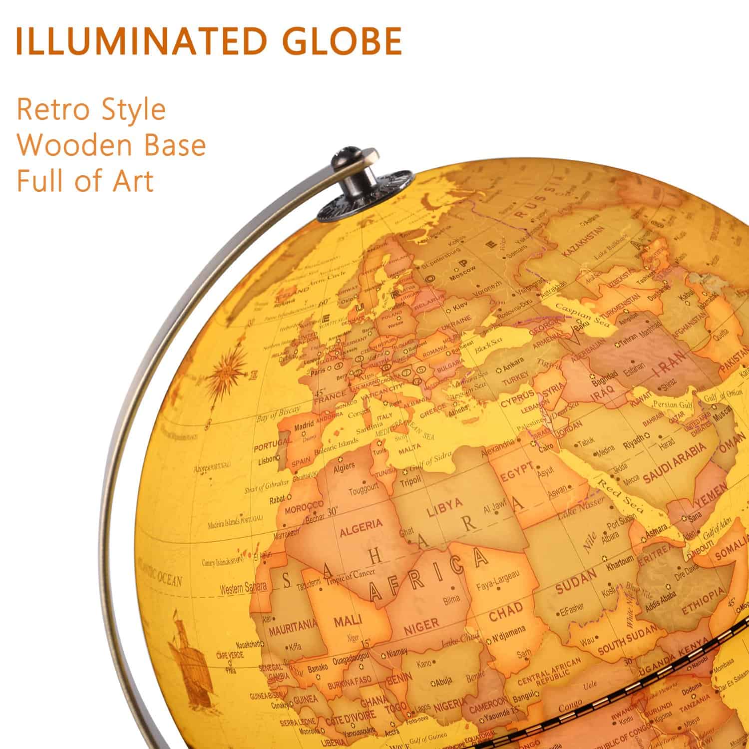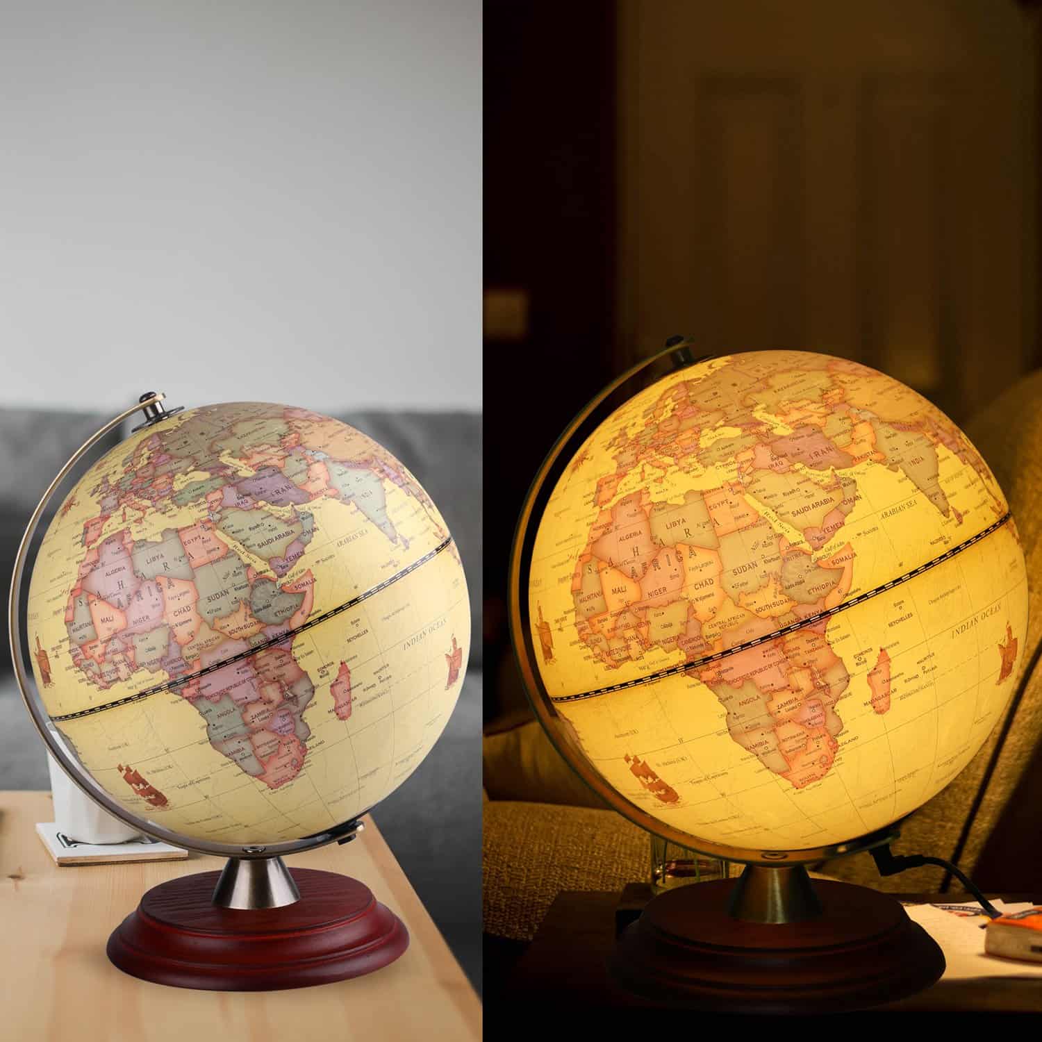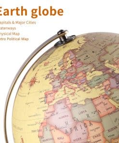 A los niños les encantan los globos. El regalo educativo perfecto para niños. ¡Potencia a tus hijos para que amen aprender y desarrollen su curiosidad! Si estás buscando algo práctico que tenga un encanto antiguo, entonces este es el regalo perfecto para tu hijo. Una opción más inteligente para los padres exigentes o educadores que desean dar a su hijo la mejor oportunidad de aprendizaje de una manera única y tradicional, diseñada con materiales modernos. Este globo del mundo es el tamaño perfecto para cualquier escritorio, banco, estante o simplemente en el suelo para que puedas educar a tu hijo en geografía sobre todos los lugares asombrosos. O simplemente colócalo en la habitación de tus hijos como una gran pieza. Durante el día, puedes explorar el mundo con tus hijos, ayudándoles a encontrar siete continentes, cinco océanos, varios países y ríos. Cuando cae la noche, se transforma en un globo de constelaciones iluminado. Puedes ver un total de [insert number] constelaciones que cubren todo el cielo en el globo. Debe ser una interesante interacción entre tú y tus hijos. Aprovecha el regalo que crece con tu hijo, ya que será útil para las lecciones de geografía a medida que crecen. Eventualmente, se convertirá en una hermosa pieza de decoración para su dormitorio. El mundo es realmente la ostra de tu hijo con este hermoso globo educativo. Fomenta las mentes jóvenes e inspira la creatividad con este maravilloso regalo, que fomenta el aprendizaje interactivo. ¡No se requieren pilas! Cada unidad viene con un cable de alimentación. Dimensiones: 11 x 8 x 8. Paquete contiene 1X Globo Iluminado Antiguo de 8 pulgadas, Cable USB, lupa, bolígrafo, paños de limpieza.