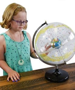 Globo Estelar Celestial Eisco Labs de 17.5″ de Altura – Diámetro de 12″ Este modelo ilustra la rotación de la Tierra sobre su eje y su revolución. El globo muestra la Vía Láctea, estrellas principales en 3D y constelaciones. Un globo terrestre detallado de 3″ está colocado dentro del gran globo estelar.