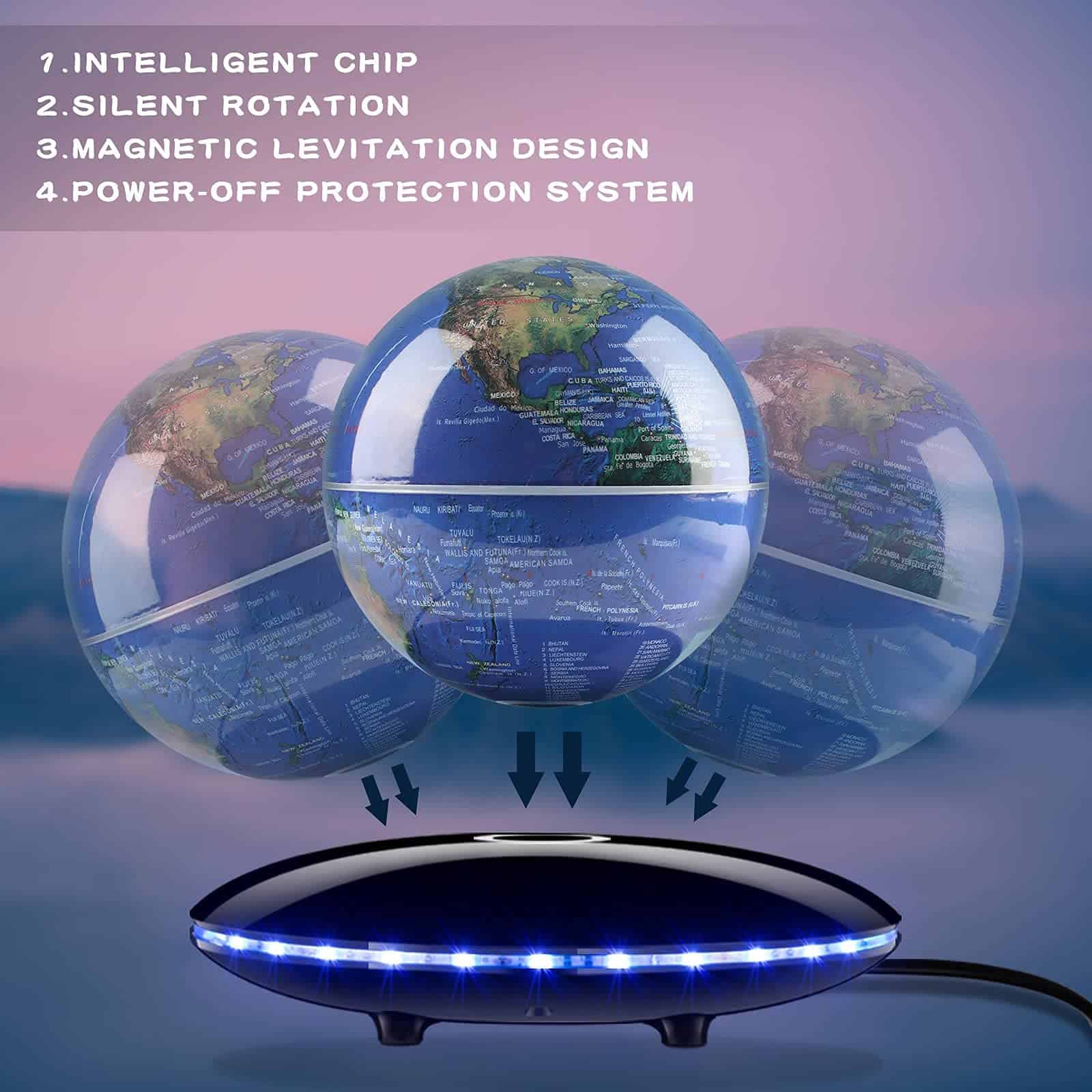 4. PROTECCIÓN ANTE FALLOS DE ENERGÍA El globo flotante magnético cuenta con un sistema inteligente de protección ante fallos de energía, cuando el producto se apaga, absorberá el bloque inferior, no te preocupes por que la esfera magnética caiga repentinamente, rompiendo la esfera, seguro, hermoso y práctico.