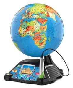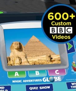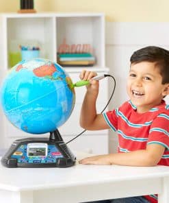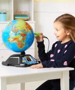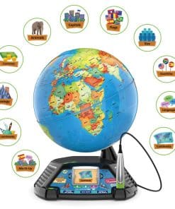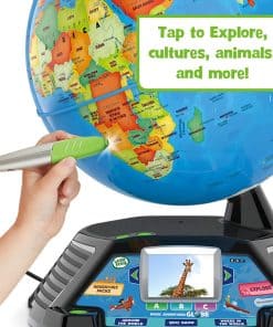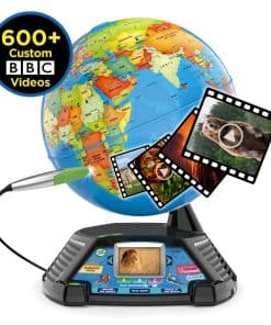 Los jóvenes exploradores pueden recorrer el mundo con este globo terráqueo interactivo de 10 pulgadas. Utilizando el lápiz, los niños experimentarán nuevos lugares, idiomas, culturas, animales, geografía, hábitats y más a través de videos de alta calidad de la BBC en una pantalla de 2.8 pulgadas. Animaciones y videos de acción real sumergen por completo a los niños en el plan de estudios para proporcionar una mejor comprensión del mundo a través de más de cinco horas de videos. También pueden jugar tres juegos para explorar el globo, desafiar a un amigo y resolver misterios. Recomendado para edades de 5 años en adelante. Requiere 4 pilas AA. Pilas incluidas solo con fines de demostración. Se recomiendan pilas nuevas para uso regular.