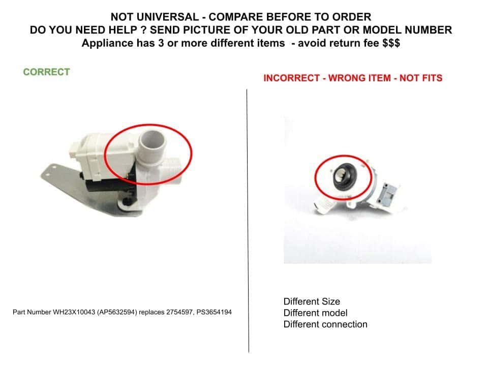 GlobPro PD00023322 AP5632594 EAP3654194 PS3654194 Ensamble de Bomba de Drenaje de Agua para Lavadoras 5″ Grande Aprox. Soporte Metálico de Reemplazo para y compatible con General Electric Hotpoint PD00023322 AP5632594 EAP3654194 PS3654194 Heavy DUTY Glob Pro Solutions marca registrada en proceso- Si necesita más rapidez, vea otras opciones en la compra. La pieza tiene 20 números de parte diferentes como: PD00023322 AP5632594 EAP3654194 PS3654194 si tiene números de serie antiguos, la nueva parte tiene un número nuevo y se ve diferente a su parte antigua, pero la nueva parte es un ajuste perfecto para series antiguas y nuevas como GCAP1800D0WW, GCWN2800D0WW, GCWN4950D0WS, GCWN5550D0WW, GCWP1805D0CC, GHWN4250D0WW, GHWN5250D0WS, GLWN2800D0WS, GLWN5250D0WW, GLWN5550D0WW, GMAN5650D0WW, GRWN5550D0WS, GRWN5550D0WW, GTAN2800D0WW, GTAN4250D0WW, GTAN5250D0WW, GTAN5550D0WW, GTAP1800D0WW, GTWN2800D0WW, GTWN4250D0WS, GTWN4950D0WS, GTWN5250D0WW, GTWN5350D0WW, GTWN5450D0WW, GTWN5550D0WW, GTWN5650D0WW, GTWN5750D0WW, GTWN5850D0WW, GTWN5950D0WW, GTWP1800D0WW, y más. Esta parte es un ajuste perfecto, no necesita cables adicionales, terminales ni pegamento, trabajo fácil de 15 minutos en promedio, Parte de Repuesto Universal NO OEM con estándares OEM, reemplazo para y compatible con True, Beverage Air, Plased, Tecumseh, RCA, Estate Whirlpool, Monogram, Maytag GE Kenmore Samsung, Frigidaire, Amana, LG Miele y más. Esas marcas sólo se utilizan como ilustración, Modelos