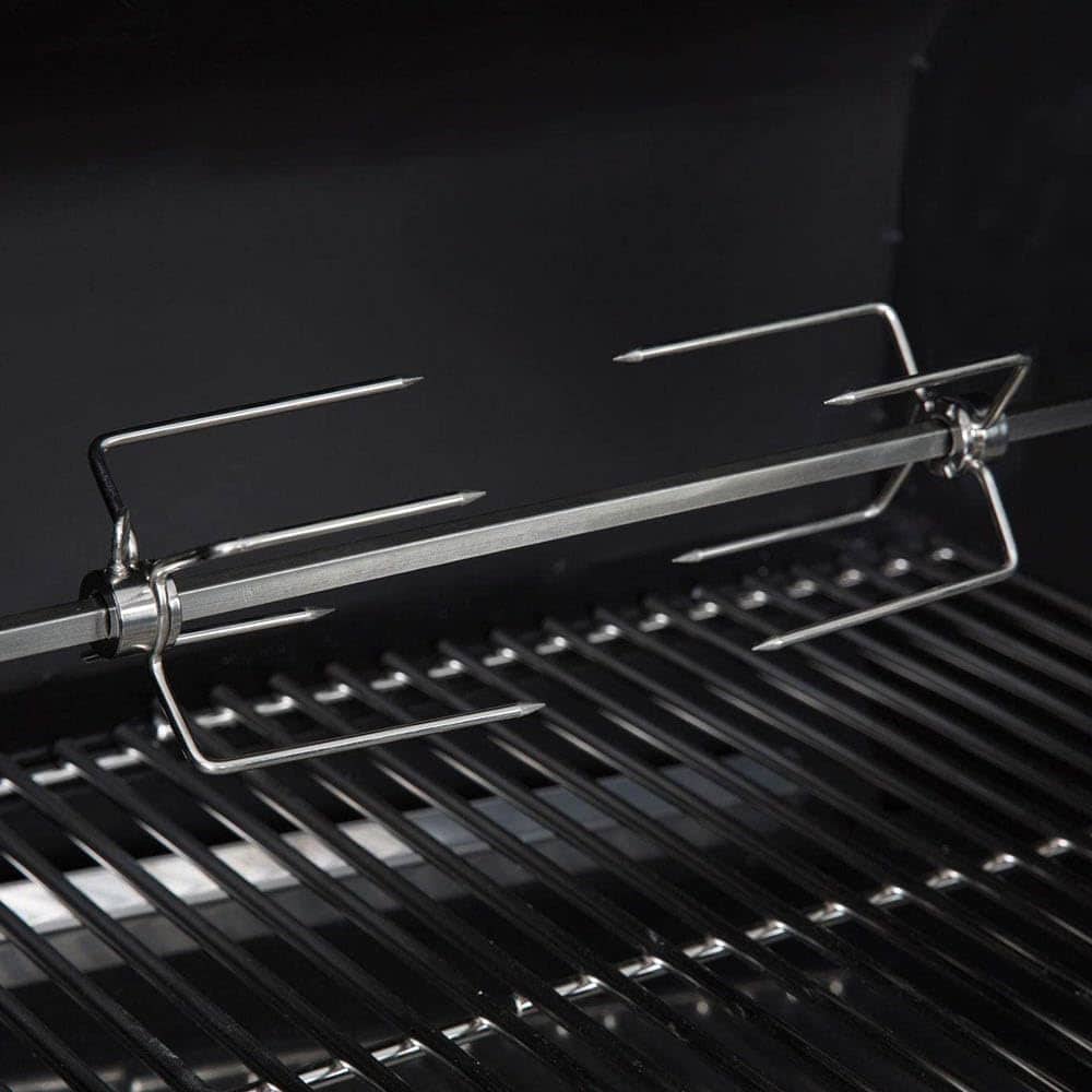 Kit de Asador Giratorio Green Mountain Grills para Parrillas Ledge – GMG-6038. GMG-6038. Asadores Giratorios. Convierte tu parrilla de pellets GMG Prime Plus en un asador giratorio de madera. Asa lentamente y ahuma pollos enteros, paletas de cerdo, lomos, costillas y mucho más. Construido para resistir los elementos exteriores, el motor de 110V está encapsulado en una carcasa de acero inoxidable. Puede sostener hasta 24 libras. Este kit de asador giratorio está diseñado para adaptarse solo a las parrillas de pellets Ledge.