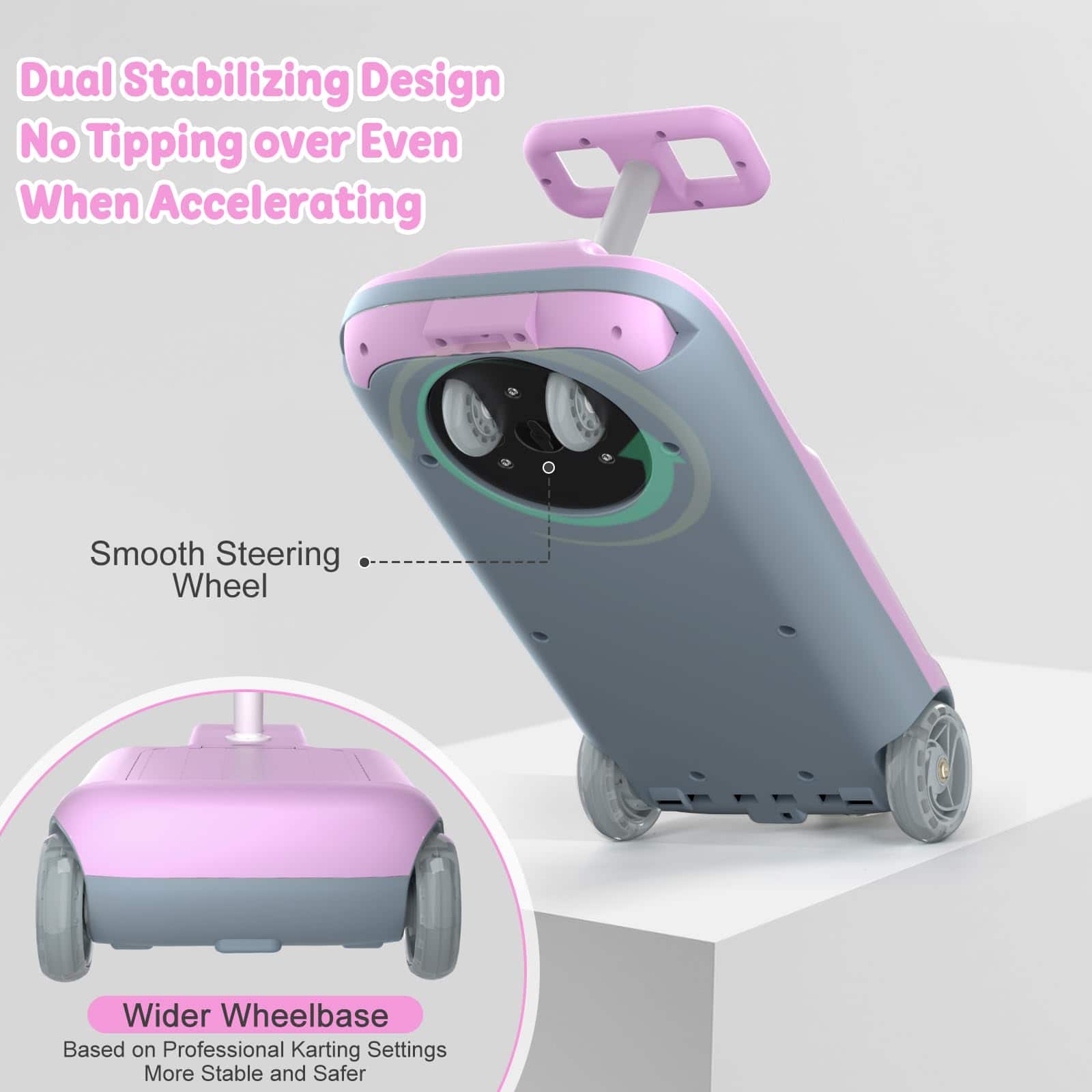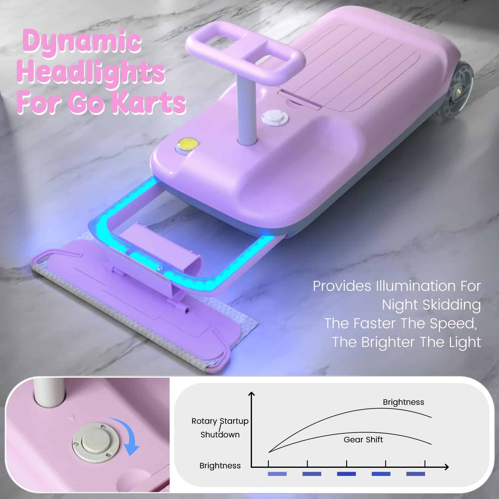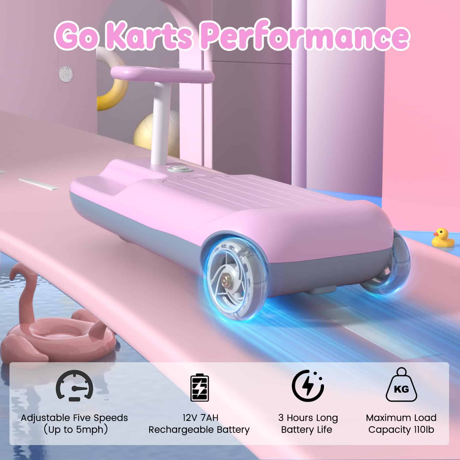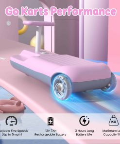 2. Rendimiento del Go Kart Portátil: Chasis estable del go kart para niños, motor fuerte, neumáticos de silicona que no dañan los pisos. Batería de 12V de largo alcance, bajo sonido de funcionamiento, ¡permita que el niño disfrute de la diversión de conducir!