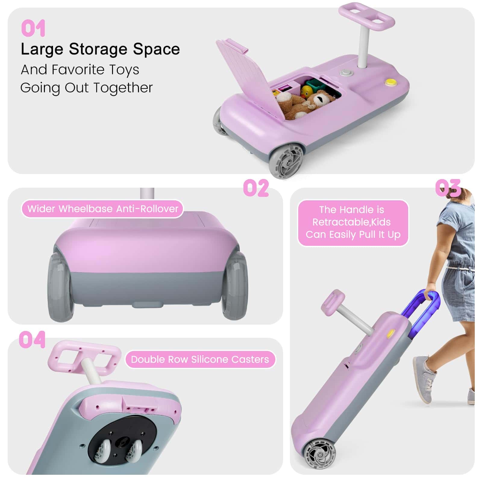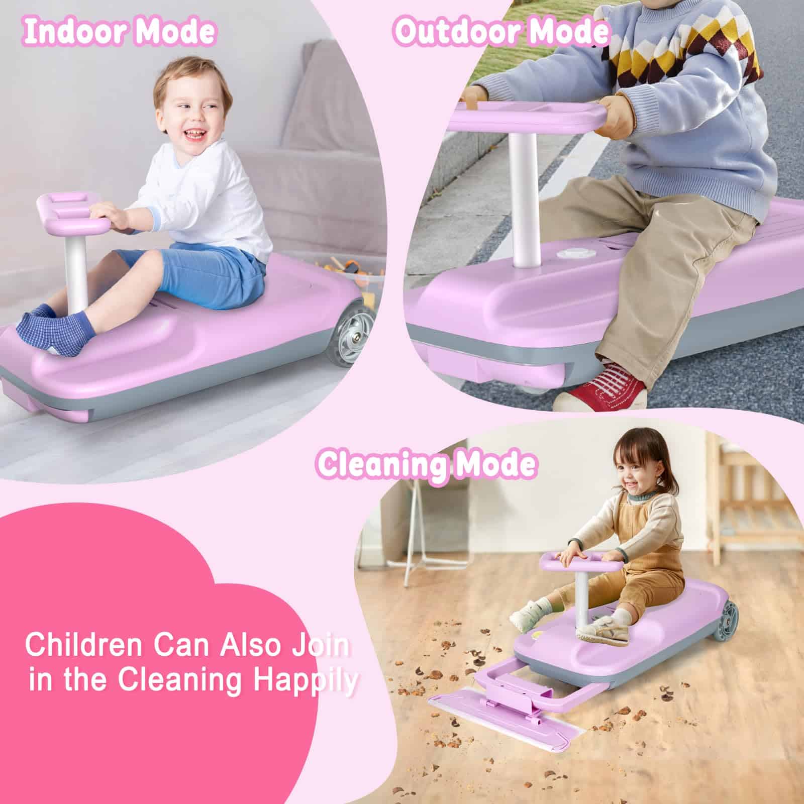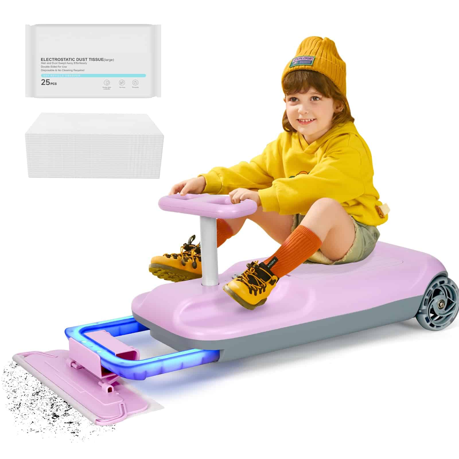 4. Multifuncional: Mientras disfrutas de la diversión de la conducción, también puedes instalar el trapeador en el auto, estamos equipados con toallitas de papel especiales, después de la instalación, puedes barrer el piso de tu hogar. Al mismo tiempo, el auto está diseñado con un espacio de almacenamiento en el interior, dándote la posibilidad de almacenar algunas cosas de uso poco frecuente.