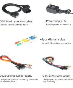 Godiag GT100+ OBDII Breakout Box es una herramienta avanzada y versátil para pruebas de banco de ECU y diagnóstico de automóviles. Con la capacidad de alimentar una ECU en el banco, este detector de protocolo OBD y CAN te ofrece la posibilidad de realizar diagnósticos, trabajar en el inmovilizador del vehículo y en la seguridad del mismo, ya sea en el banco con el adaptador de corriente suministrado o en el vehículo a través del puerto OBDII. Además, GT100+ no solo verifica todos los pines de diagnóstico obd2, sino que también es capaz de comprobar protocolos obd2 no estándar, como los puertos 1, 9, 3, 11, 12, 13 y 8, lo que incluye la capacidad de probar el protocolo CAN BUS y K-LINE. Esta funcionalidad te permite verificar la comunicación, la alimentación y las tierras antes de conectar tus valiosas herramientas de escaneo, evitando así posibles daños por falta de alimentación o tierra adecuadas. El breakout box GT100+ OBDII destaca por su fácil operación con conectores banana y pantalla de corriente, lo cual facilita las reparaciones de ECM y ECU en vehículos. Además, la fuente de alimentación auxiliar suministra energía al vehículo a través del breakout box GT100+ antes de reemplazar la batería, garantizando la continuidad del suministro de energía.
