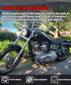3. Instalación a tornillo: La Cubierta de Embrague del Motor de Goldfire se ajusta exactamente igual que la original de fábrica. Las Cubiertas Derby se instalan en 5 minutos o menos utilizando los tornillos originales de fábrica.