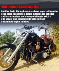 2. Fantástica artesanía: Las cubiertas Derby de Goldfire cuentan con logotipos grabados con láser para una apariencia limpia y nítida; las superficies abovedadas están anodizadas en negro o cromadas pulidas a un rico brillo satinado, lo que complementa tanto los acabados de motor pulidos como pintados. Con su diseño elegante, convierte tu Tren de Potencia en un Elegante Look CNC.