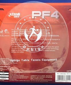 Descripción: Características: adecuado para un estilo de juego de romper rápido. Estaba asociado con varios campeones mundiales para múltiples trofeos. La nueva PF4 ha adoptado el mismo proceso de producción que la goma hurricane 3, adecuada para uso en prácticas de aficionados. PF4 fue utilizado por docenas de jugadores chinos para ganar los juegos, lo que ya se ha convertido en una de las gomas más clásicas en la era de la pelota de tenis de mesa de 40mm.