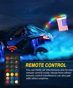 GOOACC 2PCS 5FT LED Whip Light Spiral RGB Chasing Whips con Control Remoto RF Duraderas Luces con Interruptor LED Antena para UTV ATV Camión Sand Rail Buggy Dune RZR Can-am, 2 Años de Garantía: Diseño en espiral, brilla en dirección 360, ilumina la noche con cientos de patrones de baile como chase, build-up, strobe, pulse, scan, stack, etc y 12 colores sólidos. Asegúrate de estar seguro en el sendero nocturno sin ser dejado atrás, agrega más diversión y siempre destaca en el paseo. Adecuado para UTV, ATV, 4 Wheeler, camiones, pickups, Go Kart, RZR, Can-am, Polaris, Buggy Dune, Jeep, SXS, Sand Rail, motocicleta y Bote, etc.