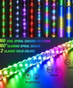 GOOACC 2PCS 5FT LED Whip Light Spiral RGB Chasing Whips con