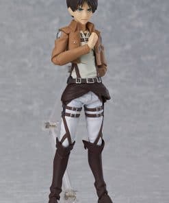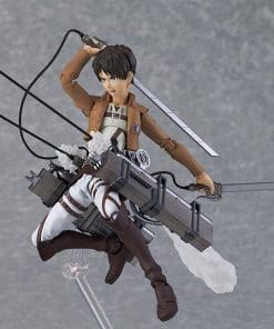 De Max Factory/Good Smile Company. ‘¡El contraataque de la humanidad comienza ahora!’. De la serie de anime Ataque a los Titanes llega una figma del personaje principal de la serie, Eren Yaeger. Utilizando las articulaciones suaves y posables de figma, puedes recrear una variedad de escenas diferentes. Viene con tres expresiones incluyendo su cara estándar determinada, una cara enojada y una cara sorprendida. Sus cuchillas dobles están incluidas para escenas de combate, junto con su Equipo de Maniobra Vertical y efectos de humo para recrear su uso. También se incluyen los ganchos conectados a un cable que se disparan desde el equipo, junto con su capa de la Legión de Exploración. Se incluye un soporte articulado figma, que permite tomar varias poses.