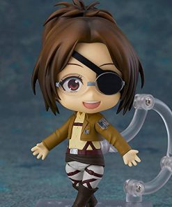 Desde Good Smile Company. ¡De la popular serie de anime Attack on Titan llega una Nendoroid de la líder del escuadrón del Cuerpo de Exploración, Hange Zoë! Viene con tres placas faciales que incluyen su expresión estándar, su expresión sonriente a menudo vista en batalla y su expresión emocionada después de haber visto un Titán. Viene con muchas partes opcionales incluyendo su equipo de maniobras verticales, espadas dobles y partes de efecto para recrear movimientos en el aire. También viene con gafas y la hoja de informe que usa al estudiar a los Titanes, lo que te permite recrear mucho más que solo escenas de combate. Su capa del Cuerpo de Exploración también está incluida. La capa cuenta con un nuevo esculpido que permite una pose de acción aún más detallada. ¡Asegúrate de agregarla a tu colección de Nendoroids de Attack on Titan! También se incluye una parte especial de la mano (puño cerrado) para la Nendoroid de Levi (se vende por separado).