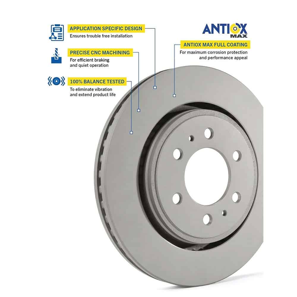Los discos de freno Goodyear 214116GY están especialmente diseñados con un recubrimiento AntiOx para una vida más larga y resistir la corrosión. Construidos con fundiciones de alto carbono, estos discos ofrecen una mayor estabilidad y durabilidad. Además, están equilibrados para reducir las vibraciones y garantizar un funcionamiento suave y silencioso. El mecanizado de precisión CNC asegura un frenado eficiente y una operación óptima. Compatible con una variedad de camiones y SUV, incluidos Chrysler Aspen, Dodge Durango y varias versiones de Ram 1500.