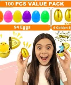 4. Huevos de Pascua Para Favores de Fiesta. 100 Huevos de Pascua coloridos tienen 6 huevos dorados, lo que los convierte en la opción definitiva para las búsquedas de huevos de Pascua y fiestas. La inclusión de huevos dorados le ahorra tiempo y esfuerzo, ofreciendo una comodidad inigualable.