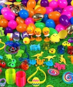 2. Variedad Emocionante de Juguetes. Estos 100 Huevos de Pascua prefabricados con juguetes variados tienen una amplia variedad de pequeños juguetes, que van desde animales pequeños hasta mini juegos, atendiendo a varios intereses de los niños. Estos huevos de plástico están listos para la Pascua con su apariencia colorida y bordes suaves. Fáciles de abrir y cerrar estos huevos de plástico.