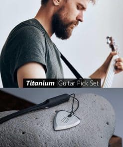 La púa de guitarra de titanio GPCA es el accesorio perfecto para músicos que buscan mejorar su experiencia musical. Fabricada con titanio duradero, esta púa de guitarra y ukelele es de 3 mm de grosor, lo que la hace resistente y duradera. Viene con una correa de muñeca de silicona para que puedas llevarla contigo a todas partes sin tener que preocuparte por perderla. Esta púa de metal añade un toque metálico único a tu música, elevando el sonido de tu instrumento de cuerda. Su acabado cepillado suave de titanio proporciona un agarre seguro y cómodo, evitando que se resbale durante la interpretación. Además, cuenta con una ranura para llavero y una banda para la muñeca para que puedas llevarla fácilmente contigo. Empacada en una elegante caja, esta púa de guitarra es un regalo ideal para cualquier músico o amante de la música que apreciará su calidad y funcionalidad.