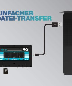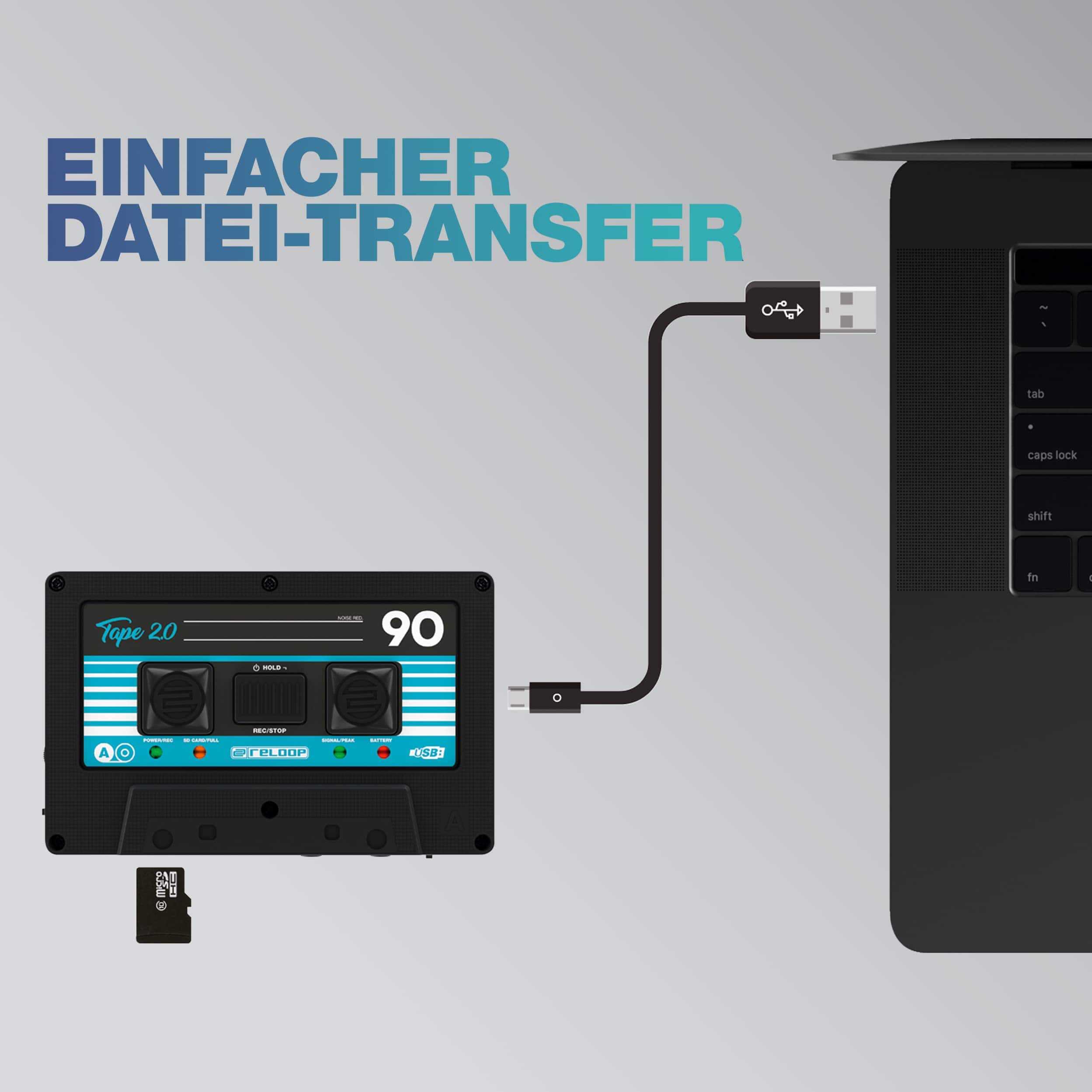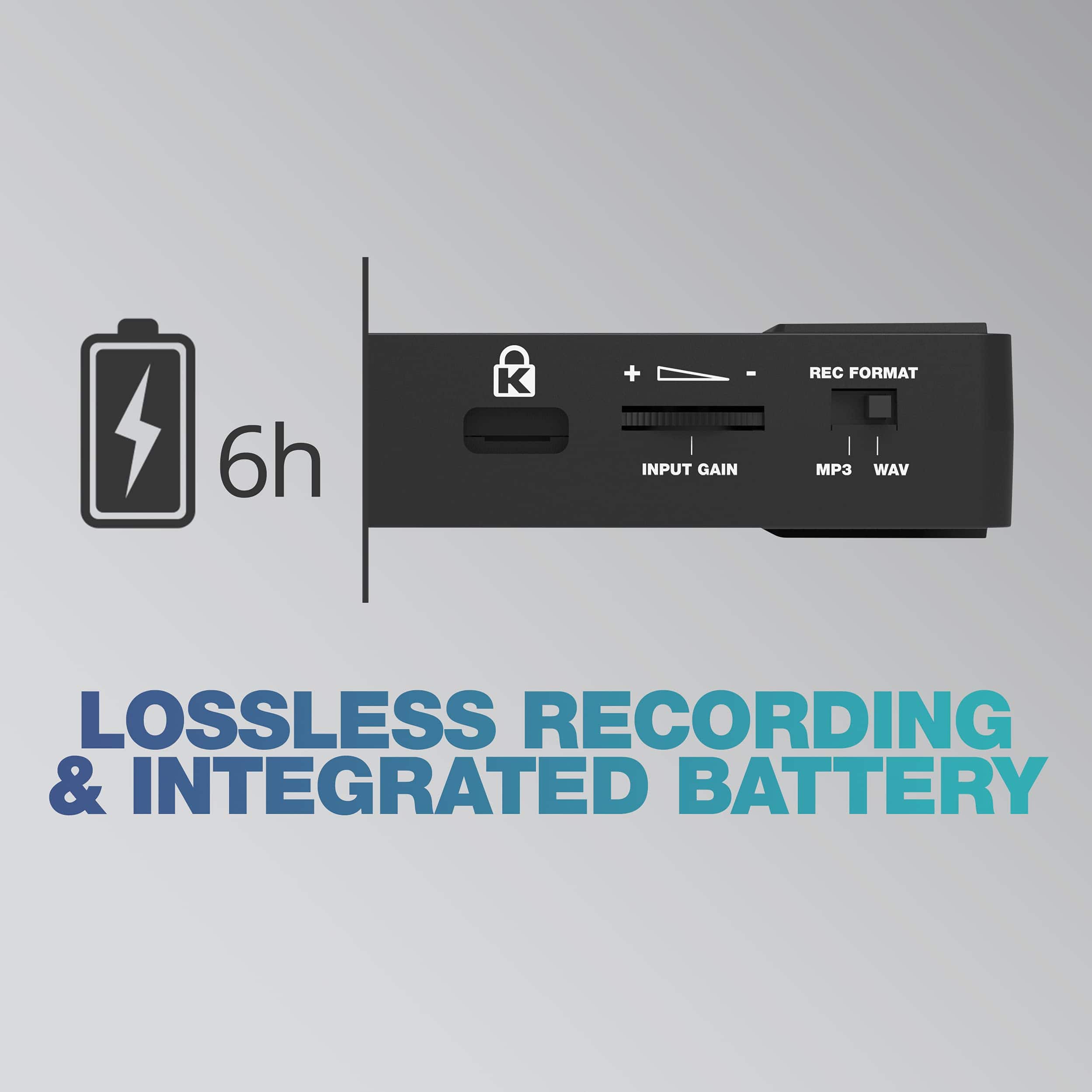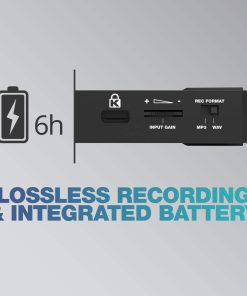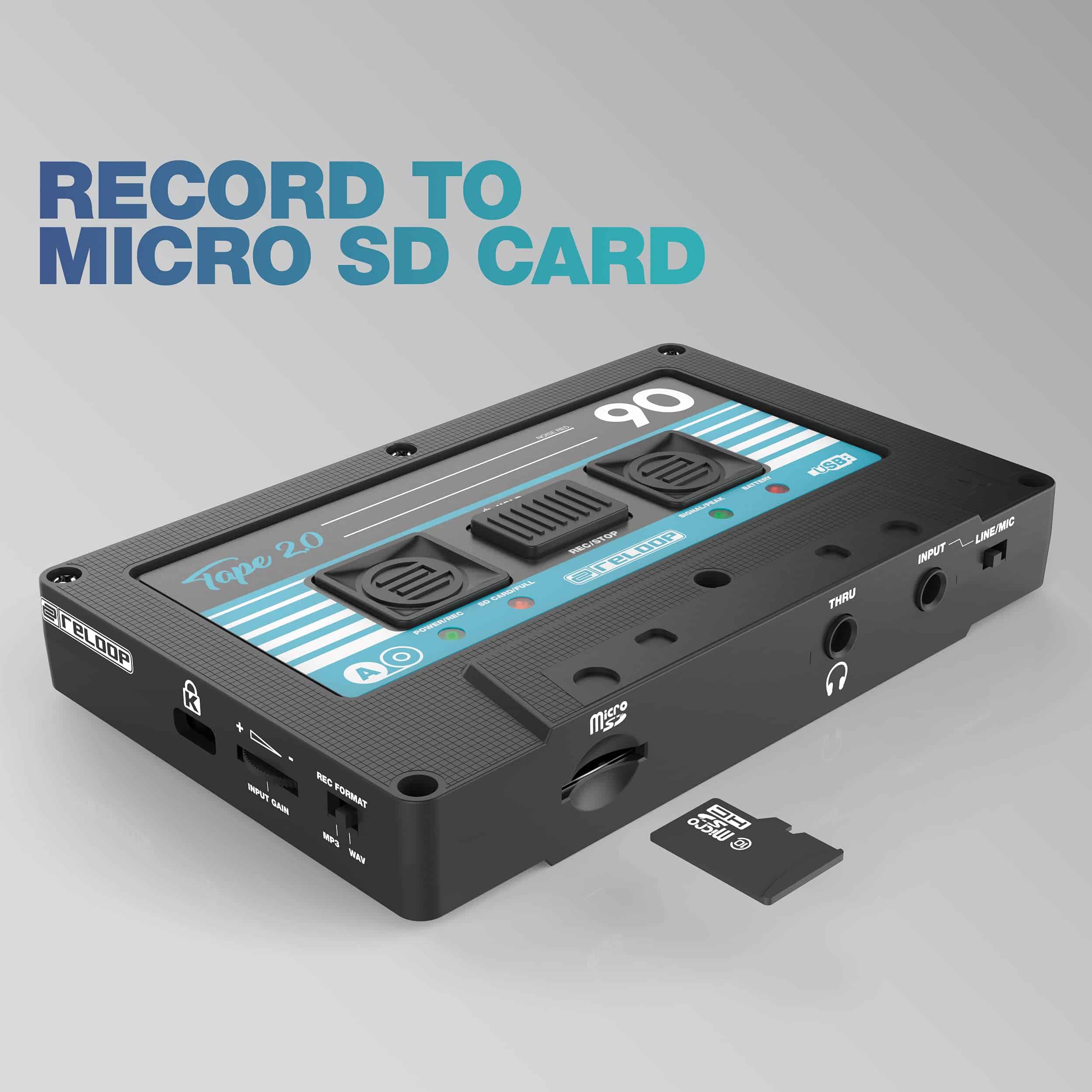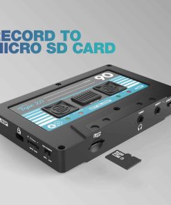 1. Grabador de audio portátil con diseño retro de cassette. 2. Batería recargable de Li-Ion integrada con hasta 6 horas de grabación activa. 3. Grabación sencilla en 24 bits como WAV o MP3. 4. Conéctalo a una computadora y úsalo como lector de tarjetas para microSD. 5. Juegos de pegatinas incluidos permiten personalizar su apariencia.