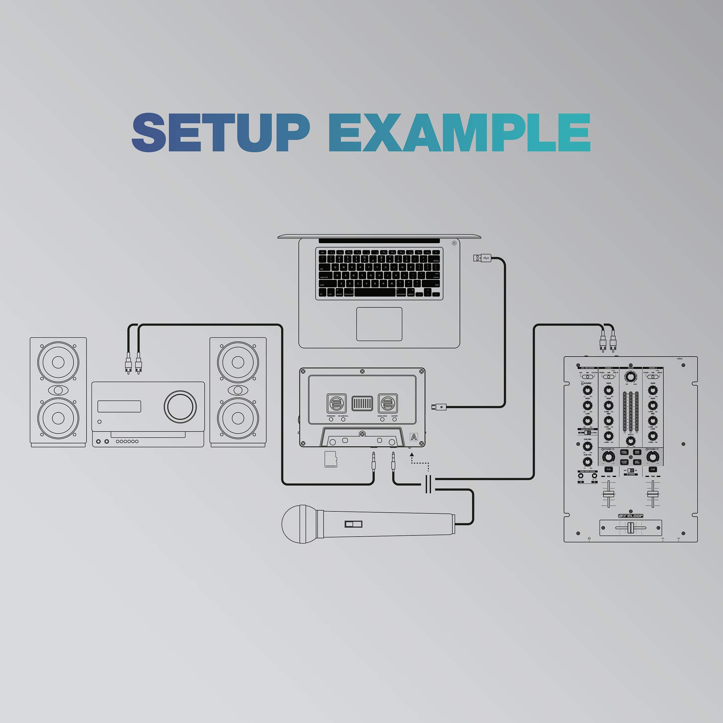 El Reloop TAPE 2 es un dispositivo de grabación de audio para DJs con batería de iones de litio integrada y diseño retro de cassette que te permite grabar tu mezcla en formato WAV o MP3 directamente en una tarjeta microSD. Los convertidores A/D integrados ofrecen una grabación de sonido de alta calidad de 24 bits en formatos WAV sin pérdidas o MP3 (320 kbps). TAPE 2 es extremadamente portátil gracias a la batería de iones de litio interna con hasta 6 horas de grabación con una carga completa. La carga sobre la marcha se maneja fácilmente utilizando cualquier fuente de alimentación USB estándar. Fuentes de nivel de línea o de micrófono como reproductores de CD, mezcladores de DJ o micrófonos dinámicos pueden conectarse directamente a TAPE 2 a través de la entrada de jack de 3.5 mm. Al utilizar la salida THRU, la señal de audio puede monitorearse con auriculares o puede ser enrutada a través de los altavoces principales. Esto se recomienda para fuentes de audio de salida única que no tienen una salida de grabación dedicada (REC). Además de ser un dispositivo de grabación de audio, TAPE 2 también se puede conectar a una computadora y utilizarse como lector de tarjetas para tarjetas microSD. Para hacer un seguimiento del material grabado, todas las grabaciones en TAPE 2 pueden etiquetarse con una marca de tiempo con la ayuda de la herramienta de sincronización. Con las pegatinas incluidas, también es posible personalizar el aspecto de tu TAPE 2.