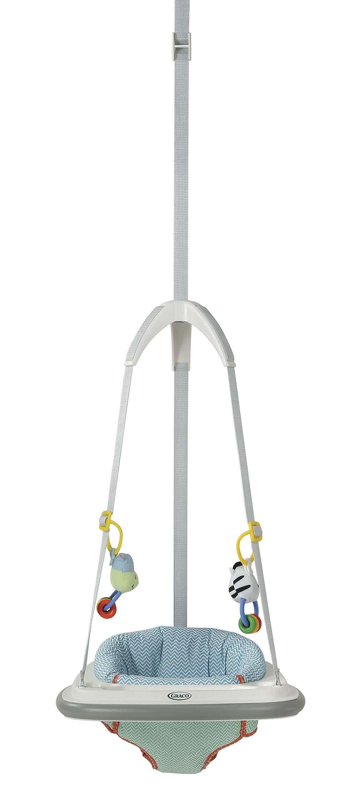 ¡Mantén al bebé riendo durante horas con el saltador de puerta Bumper Jumper! Fácil de transportar, con un soporte para marco de puerta sin marcas, este entretenedor lleno de acción te permite llevar al bebé de una habitación a otra para que puedas mantener al bebé a tu lado. El cojín del asiento de nylon se puede quitar fácilmente y tirar a la lavadora para hacer la limpieza más fácil. La bandeja de juego le da al bebé un lugar para jugar con juguetes para más opciones de entretenimiento. La altura se ajusta fácilmente y las correas que no se retuercen hacen que sacar al bebé y ponerlo sea fácil y libre de estrés.