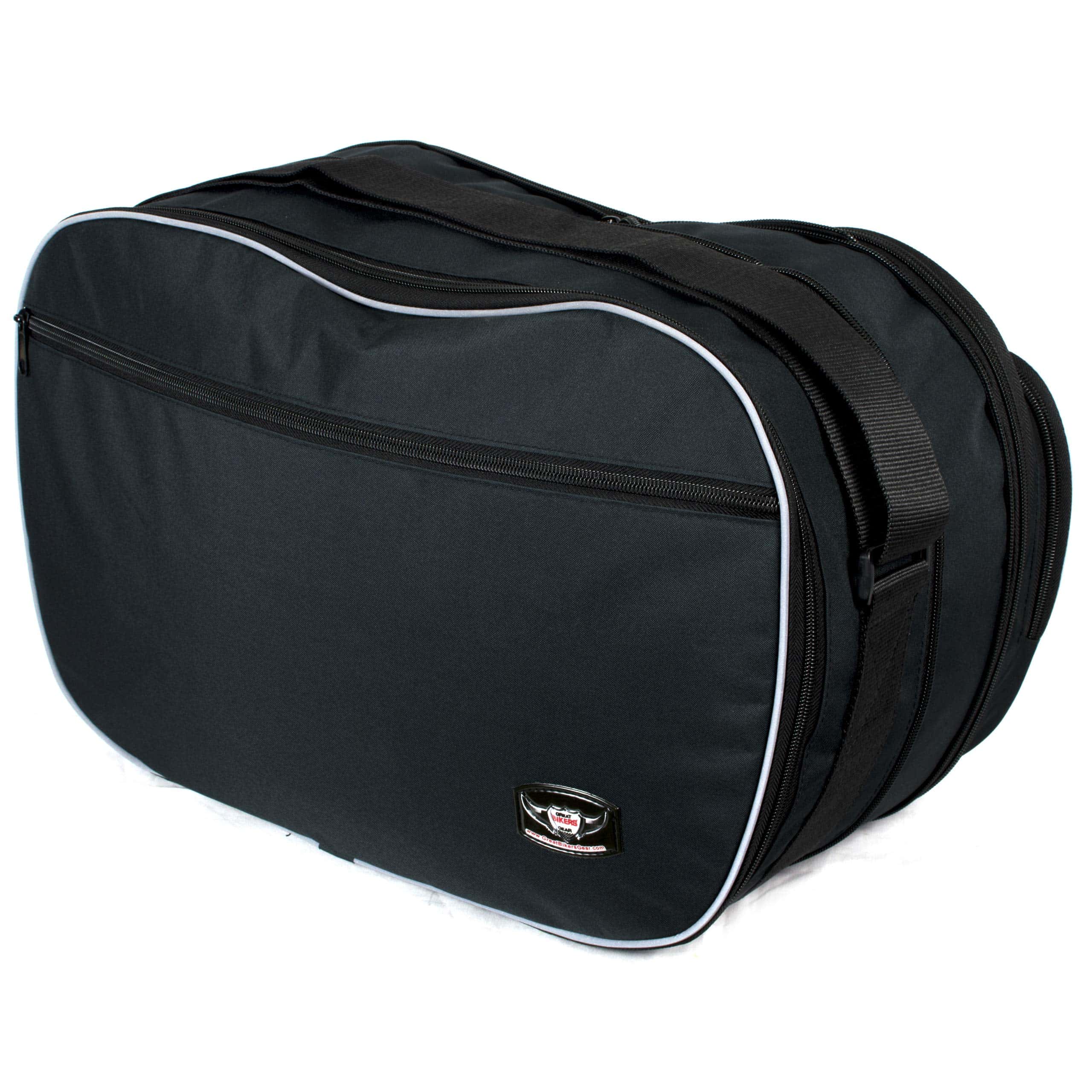 Great Bikers Gear ofrece la mejor calidad de bolsa de forro interno para Kappa K960. La bolsa de caja superior viene con un aspecto perfecto, un diseño tentador y tiene la capacidad de llevar suficiente peso. Se utiliza ribete reflectante que no solo se ve bien, sino que también mejora su visibilidad en la oscuridad. Con un precio muy razonable en comparación con otras marcas en el mercado. Se utiliza material pesado 600 x 600 Denier Poliéster Vinilo Laminado PVC para hacer esta bolsa duradera y resistente. Se utiliza hilo de nylon resistente en la costura para mantener la bolsa segura y evitar que se rompa cuando está completamente llena. El ribete resistente mantiene la bolsa de caja superior en forma para un ajuste perfecto en la caja superior y utiliza el espacio máximo y no es vulnerable a romperse. Empacar tus cosas en esta bolsa es muy sencillo y suave ya que estas bolsas se abren ampliamente como una maleta. Las cremalleras de alta calidad añaden suavidad y no se atascan al abrir y cerrar la bolsa. Esta bolsa es muy práctica y ligera para que puedas llevarla a donde quieras. Asas de transporte y correa para el hombro que la hacen accesible para llevarla a cualquier lugar. Se agrega un bolsillo adicional en el exterior del diseño para que puedas colocar mapas y documentos de viaje.