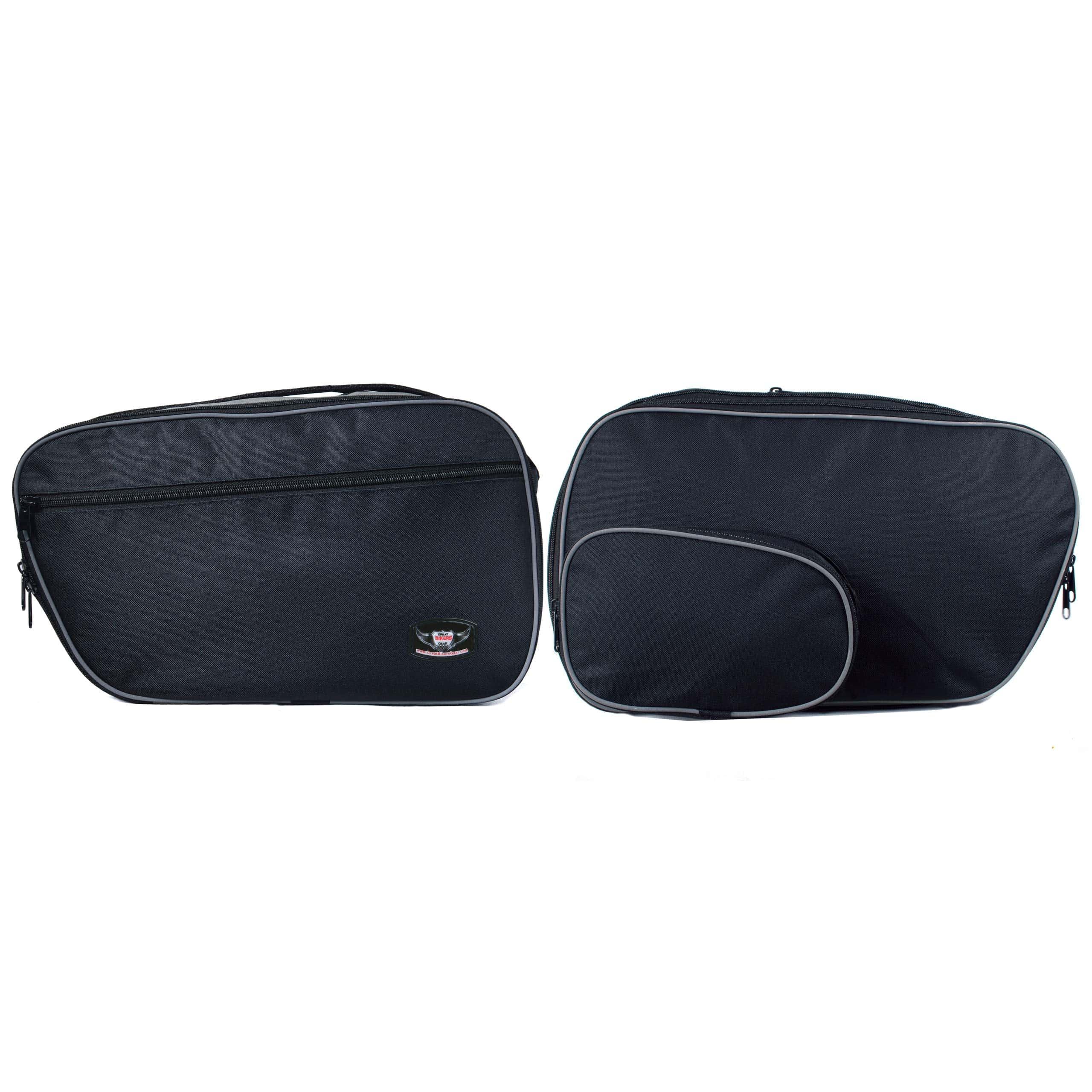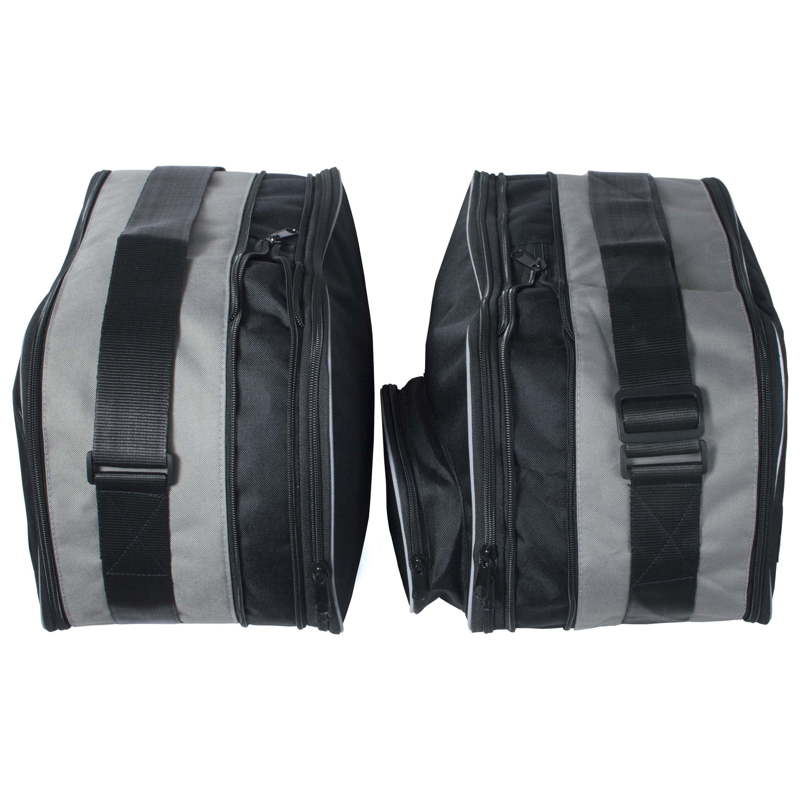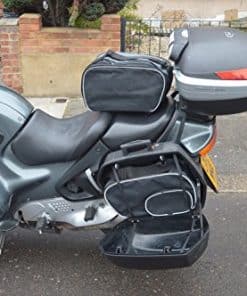 Great Bikers Gear ofrece las bolsas de revestimiento de la mejor calidad para RT GS 1150 1100 850 K1200 Bike. Las bolsas pannier de BMW vienen con un aspecto perfecto, un diseño tentador y tienen la capacidad de llevar suficiente peso. Se utiliza tubería reflectante que no solo se ve bien sino que también mejora su visibilidad en la oscuridad. Con un precio muy razonable en comparación con otras marcas del mercado. Se utiliza material resistente de 600 x 600 Denier Poliéster Vinil Laminado PVC para hacer estas bolsas duraderas y resistentes. Se utiliza hilo de nylon resistente en la costura para mantener la bolsa de revestimiento de pannier segura contra la división cuando está completamente empacada. La tubería resistente mantiene las bolsas pannier para RT GS 1150 1100 850 K1200 Bike en forma para un ajuste perfecto en los panniers y aprovechar al máximo el espacio sin ser vulnerables a dividirse. Empacar tus cosas en estas bolsas de pannier es muy simple y suave, ya que estas bolsas se abren ampliamente como una maleta. Las cremalleras de alta calidad agregan suavidad y no se quedan atascadas al abrir y cerrar la bolsa. Estas bolsas son muy prácticas y ligeras para que las puedas llevar a donde vayas. Se agregan asas de transporte y correa para el hombro que facilitan su transporte a cualquier lugar. Se ha añadido un bolsillo exterior adicional en el diseño para que puedas colocar mapas y documentos de viaje.