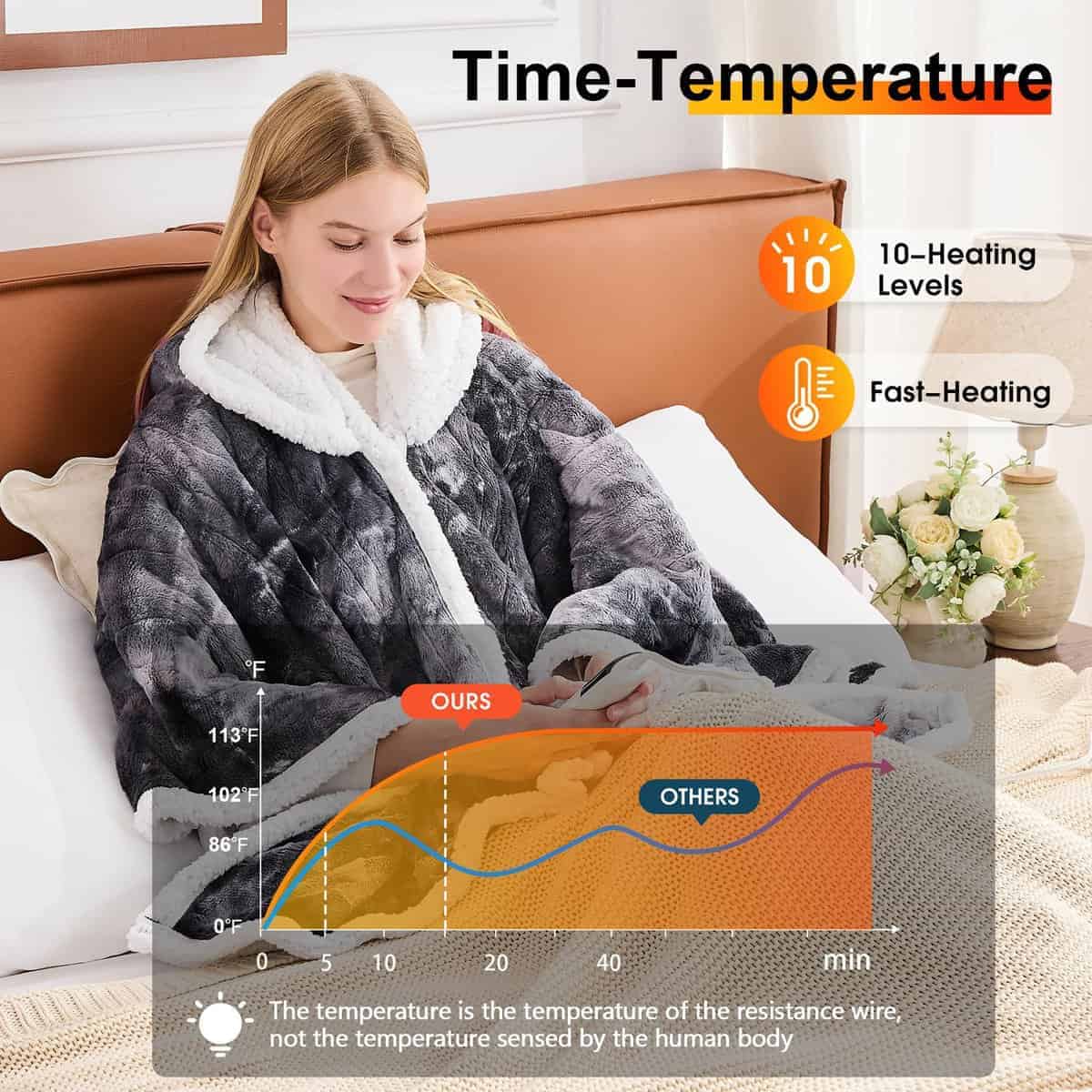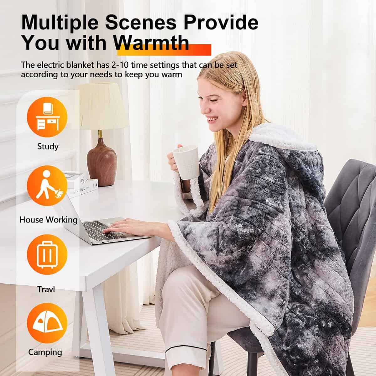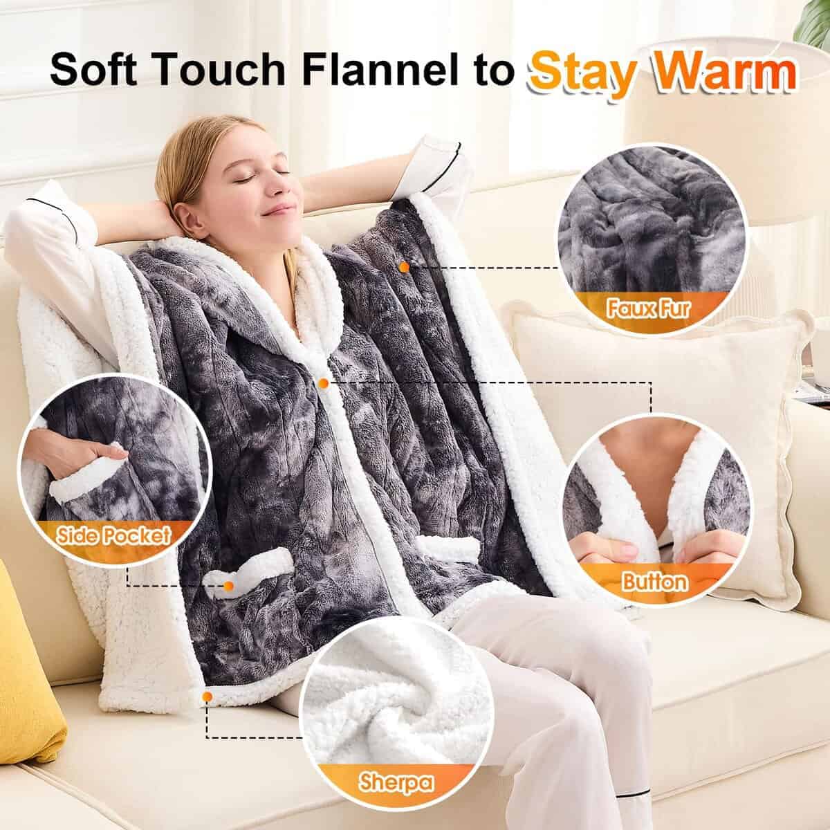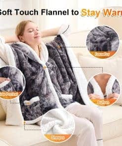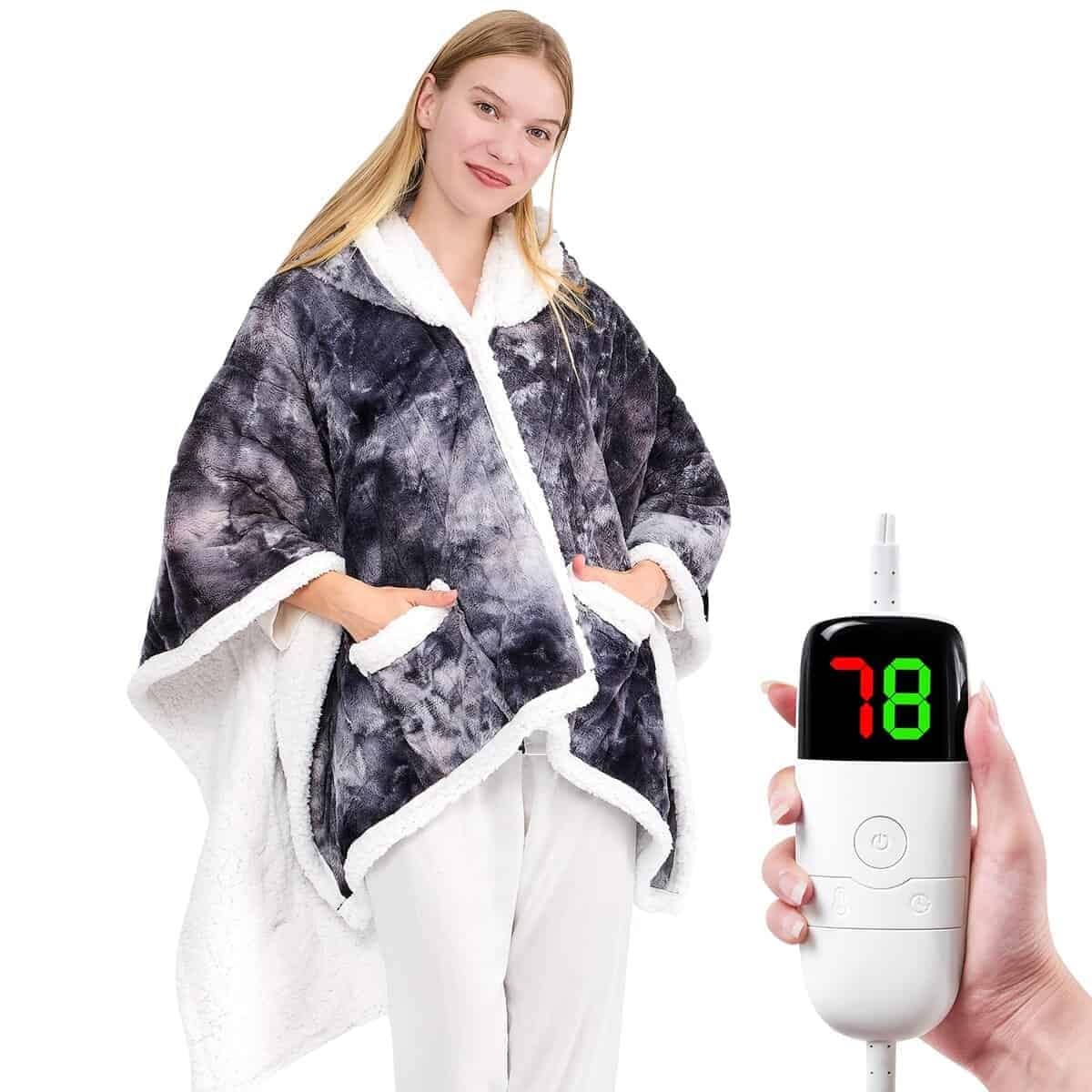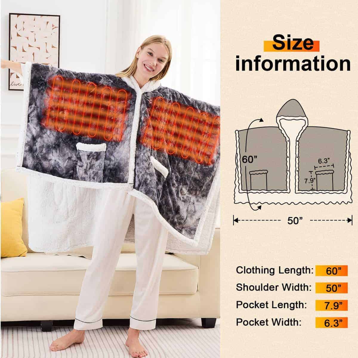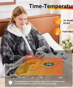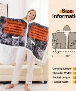 Descubre a tu Compañero de Invierno – Capa térmica portátil greenoak con capucha y bolsillo frontal, de 50″ x 60″, para un calor inigualable y acogedor. Además de mantener tu calor, esta manta térmica portátil también cuenta con un práctico bolsillo frontal para mantener tus manos calientes y llevar pequeños objetos como tu teléfono, snacks o controles remotos. Seguro y Confiable – 10 niveles de calefacción para satisfacer las necesidades de diferentes personas. La manta calefactora cuenta con la certificación de autoridad reconocida ETL y la certificación de la FCC, además de la función de protección contra sobrecalentamiento. Cuando estés ocupado con otras cosas y olvides apagar la manta térmica eléctrica, la protección contra sobrecalentamiento activará automáticamente el apagado automático de la calefacción, evitando el peligro de incendio, para proteger la seguridad tuya y de tu familia. Cálido Compañero Versátil – Ya sea que estés viendo la televisión, trabajando en la oficina, recostado en el sofá o en la cama, jugando, leyendo o tomando una siesta en casa, esta manta térmica puede brindarte calor adicional. Cuando no necesites calefacción, simplemente desenchufa la fuente de alimentación y se transformará instantáneamente en una manta térmica común para adultos, que puede acompañarte fácilmente a completar tareas domésticas, acampar o pasear al perro. Un solo objeto con múltiples usos, haciendo que el calor y la moda vayan de la mano. Abrace el Calor y la Comodidad – Esta manta eléctrica con capucha te brinda el doble de calor con su diseño suave de doble cara. Un lado es Piel Sintética amigable con la piel, el otro lado es tela Sherpa cálida, asegurando que te mantengas abrigado incluso en la fría silla de oficina. Las costuras cuidadosas hacen que cada costura sea resistente y duradera, y resistirá la prueba del tiempo. Además, es lavable a máquina y utiliza tecnología de teñido avanzada, por lo que no tienes que preocuparte por que el color se desvanezca. Un Regalo Cálido que Transmite tus Pensamientos – Esta manta envolvente calefactada es una opción ideal para amigos y familiares, ya sea en el Día de San Valentín, cumpleaños, Día de la Madre, Acción de Gracias, Año Nuevo o festividades, puede expresar tu profundo afecto. No es solo un artículo cálido práctico, sino también un regalo atento. Hay una variedad de colores y estilos disponibles para elegir, asegurando que cada ser querido pueda recibir su regalo navideño favorito, para que este invierno ya no sea frío.