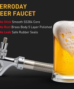 Grifo de cerveza de acero inoxidable mejorado de 4-1/8 pulgadas de FERRODAY con núcleo cromado, sin óxido ni fugas, grifo de cerveza para homebrew 1/4 pulgada, parte para Kegerator, grifo de cerveza. El núcleo de acero inoxidable 304, el cuerpo de latón forjado y el cromado premium de 5 capas hacen que este grifo de cerveza sea una hermosa decoración en tu cocina. Duradero y resistente a la corrosión, este grifo no alterará el sabor de tus cervezas. Fácil de instalar con la manguera de 1/4 de pulgada y el shank de 4-1/8 pulgadas. Ampliamente utilizado para conectar una línea de cerveza o vino a través de una pared, refrigerador o gabinete. Puedes usar el resorte para convertir el grifo en un grifo autocerrante, o utilizarlo como un grifo estándar sin el resorte. Los sellos de goma seguros para alimentos aseguran que no haya fugas ni atascos. Fácil de ensamblar y desmontar para una limpieza sencilla. La limpieza regular es clave para prevenir que se obstruya y para mantener el sabor de tus cervezas. Construcción simple que permite un flujo suave y menos espuma. El grifo profesional de cerveza de barril FERRODAY garantiza una experiencia de vertido sin problemas. Además, nuestro equipo de atención al cliente está comprometido a ofrecerte productos de alta calidad y un servicio excepcional. Si tienes cualquier problema, ¡no dudes en comunicárnoslo y haremos nuestro mejor esfuerzo para satisfacerte! Brindamos soporte técnico para resolver cualquier pregunta que puedas tener sobre nuestro producto.
