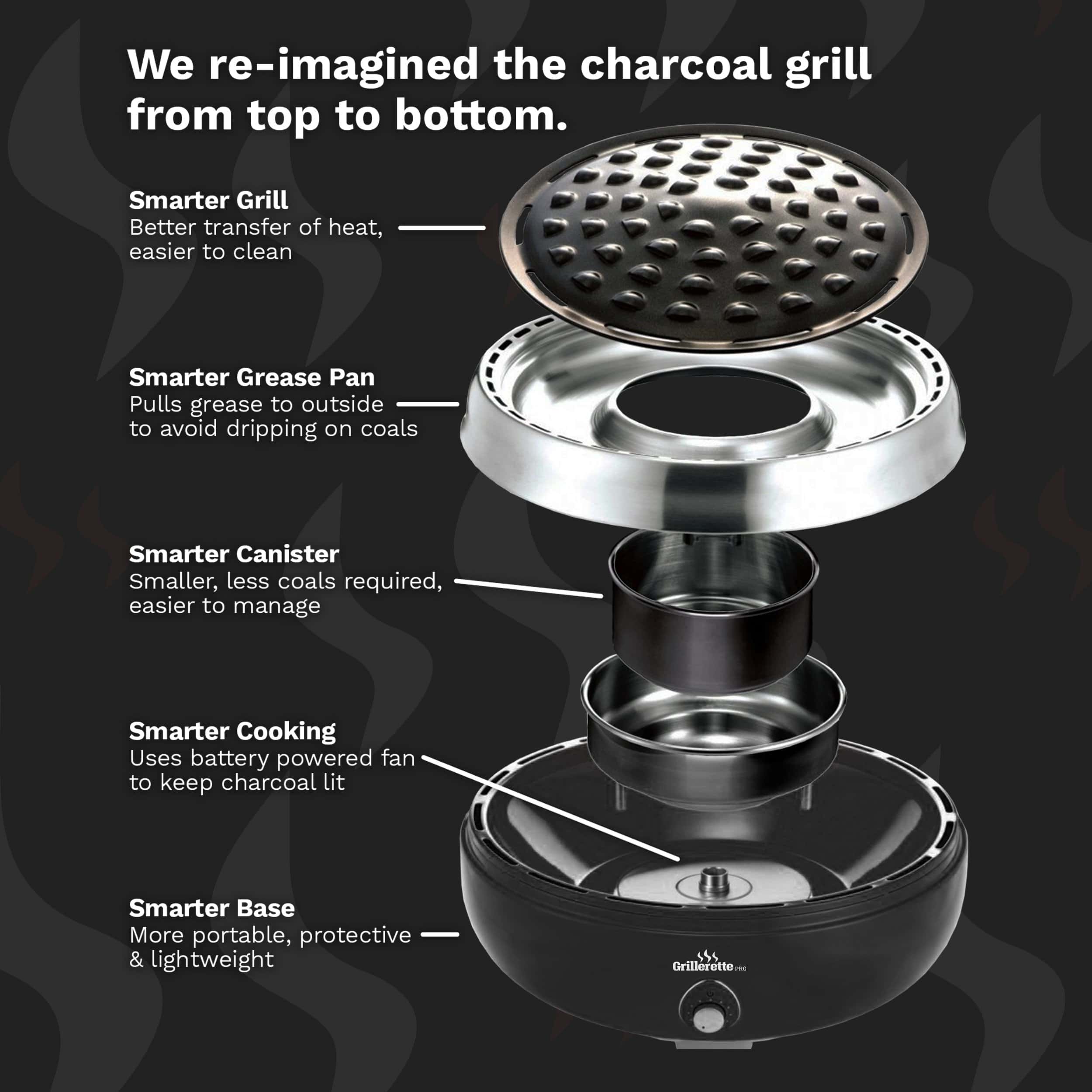 SABOR EXCEPCIONAL: ¡Como la Grillerette Pro es una barbacoa de carbón, la comida se realza con un toque ahumado y ese sabor auténtico a carbón!