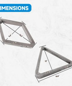 3. Tamaño: Las dimensiones del rack triangular de 8 bolas son de 14.6 x 13 x 1.25 pulgadas, las dimensiones del rack de diamante de 9 bolas son de 14.2 x 9.4 x 1.25 pulgadas.